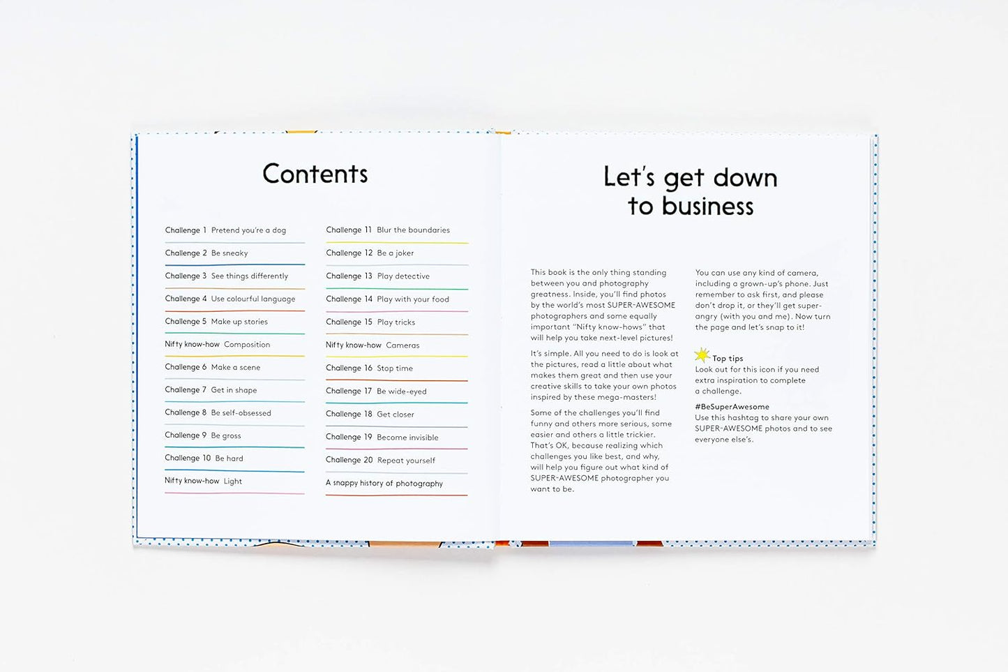 Using real photographs for inspiration, this great book features 20 exciting and instant photo challenges to help you create your own masterpieces. All you need is a camera and your super snapping skills. Learn how to be invisible, play with your food, stop time, and much more!