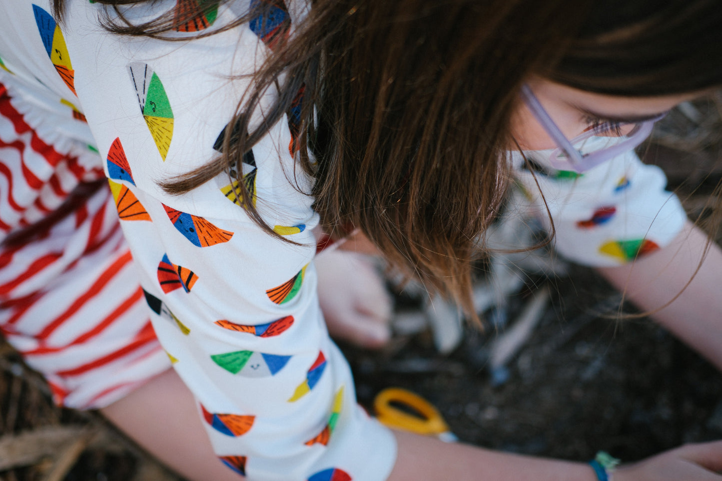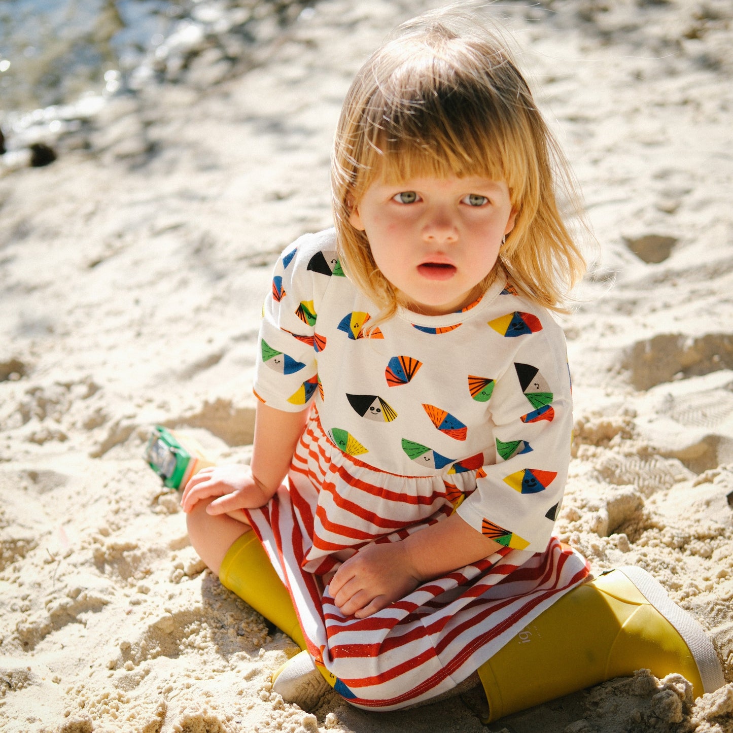 Light and free girl-butterflies flying around. Mischievous and ready for all playtime in a practical, versatile dress that gives kids the space and freedom to do whatever they want.