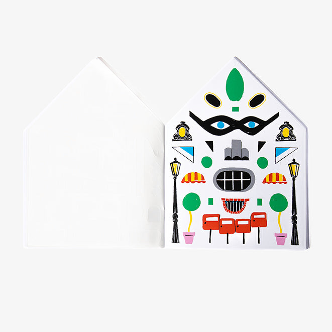 A creative workbook for children, with 18 houses' faces to color, as well as stickers! Your child will be able to create imaginary and poetic houses' facades, using his creativity and sense of humor. Our goal is to make them more familiar with architecture, possibly become passionate about it, while creating very different expressions: a house by the sea or in the city, adding cheerful eyes, a naughty smile or a pout. All stickers are shaped as an architectural item or a natural element, which combined, will reveal a face or an expression.