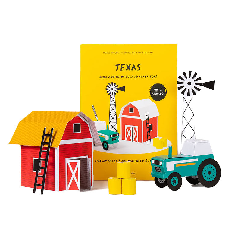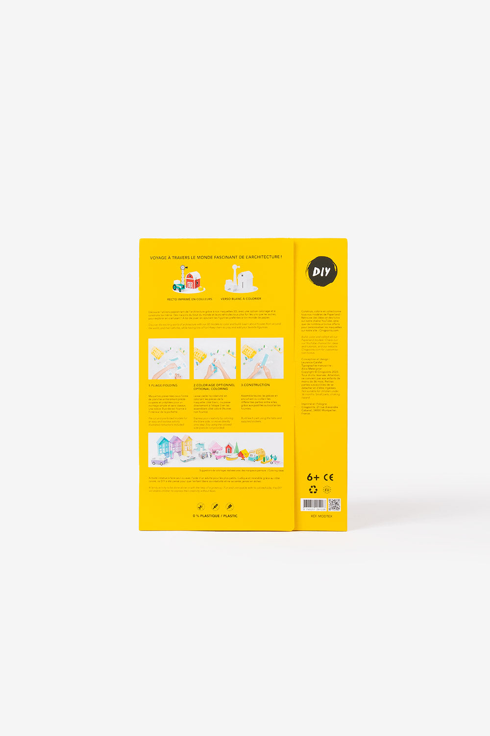 Once colored and built, the models can be kept to play or decorate a room. First comes coloring, it’s time for creativity. Without glue and scissors, all models are pre-cut which makes it impossible for children to fail or hurt themselves. They put the model together, and observe how magical volumes and space are. Finally, children can play, using their own figurines such as Playmobil, and make up never-ending stories in their own paper world.