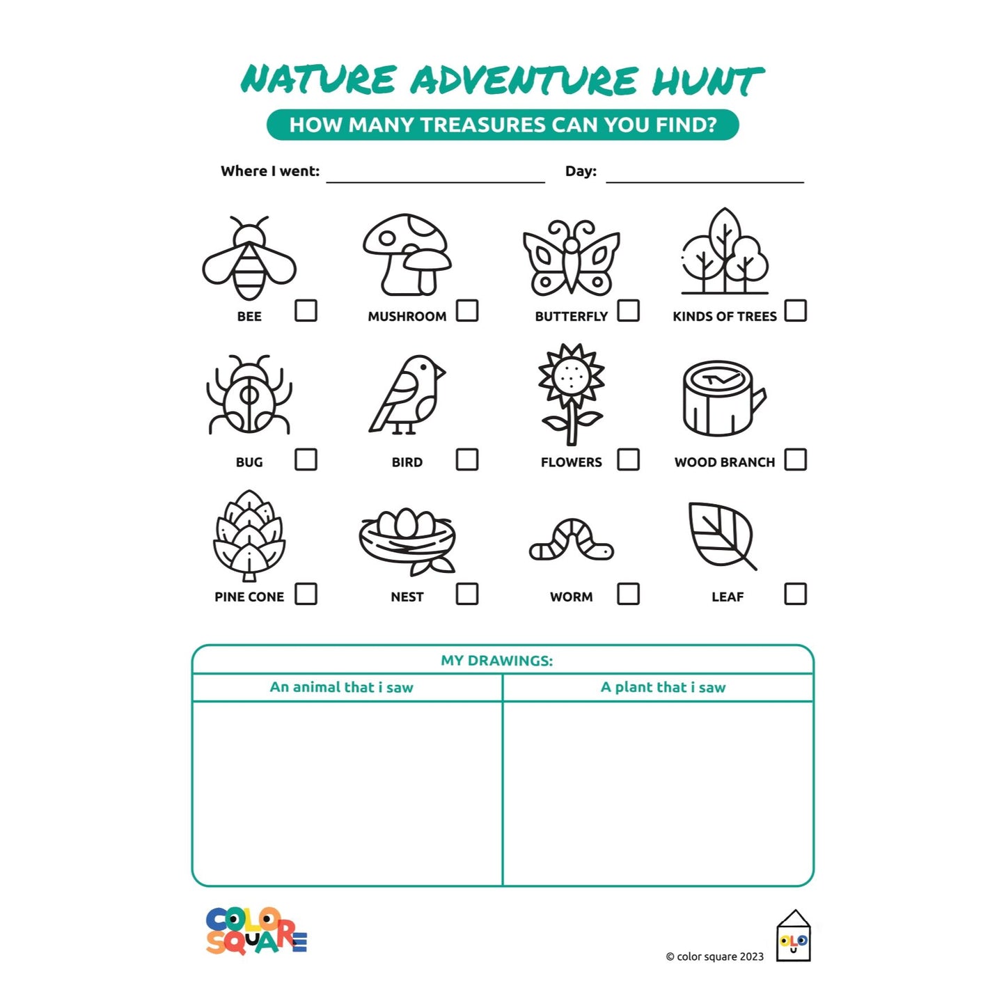 There is nothing better than exploring nature as a family, "disconnecting" from distractions and spending a day in a forest or garden and discovering all the wonders around us. Here they can mark what they found as well as draw an animal and a plant.