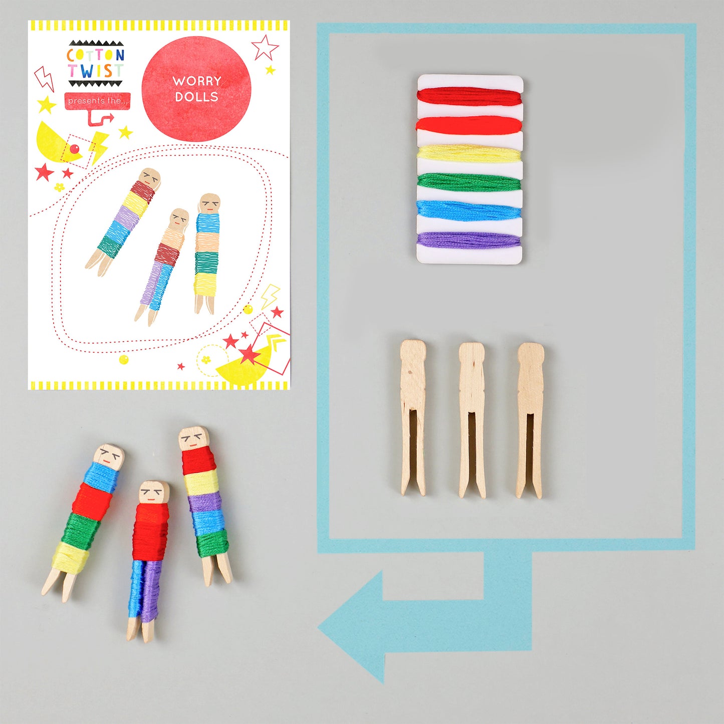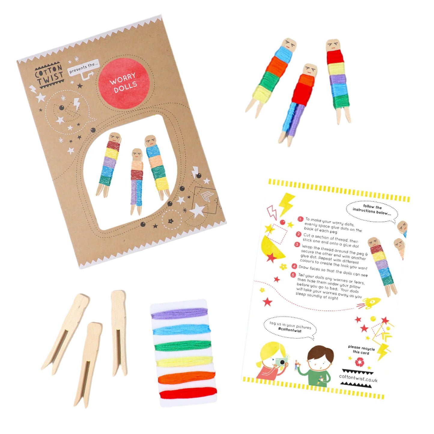 Children will enjoy creating their own set of three miniature worry dolls with this sustainable craft kit. Cotton Twist craft activities are often gifted as party bags, birthday presents, stocking fillers or rainy day activities.