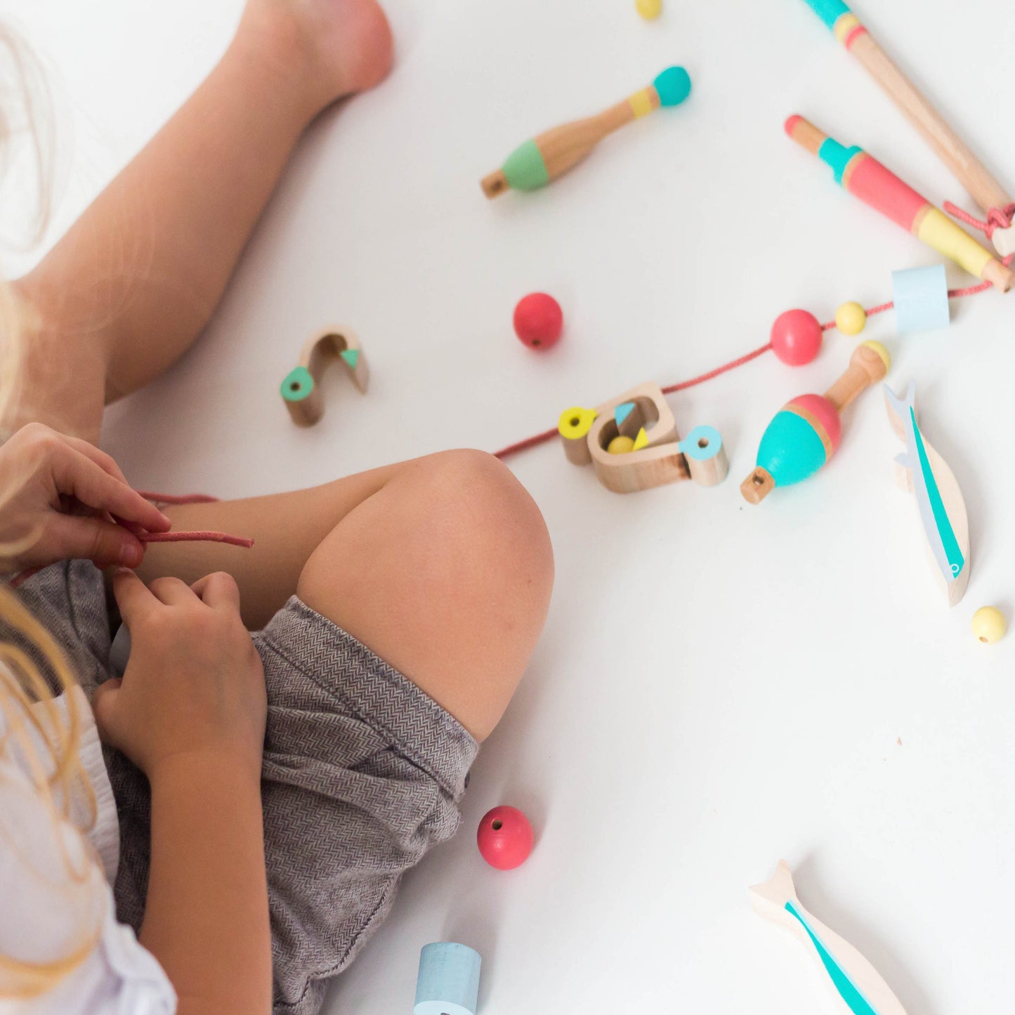 This colourful handmade bead weaving toy develops the manual skills and creativity of small children while they can learn about the basics of fishing.