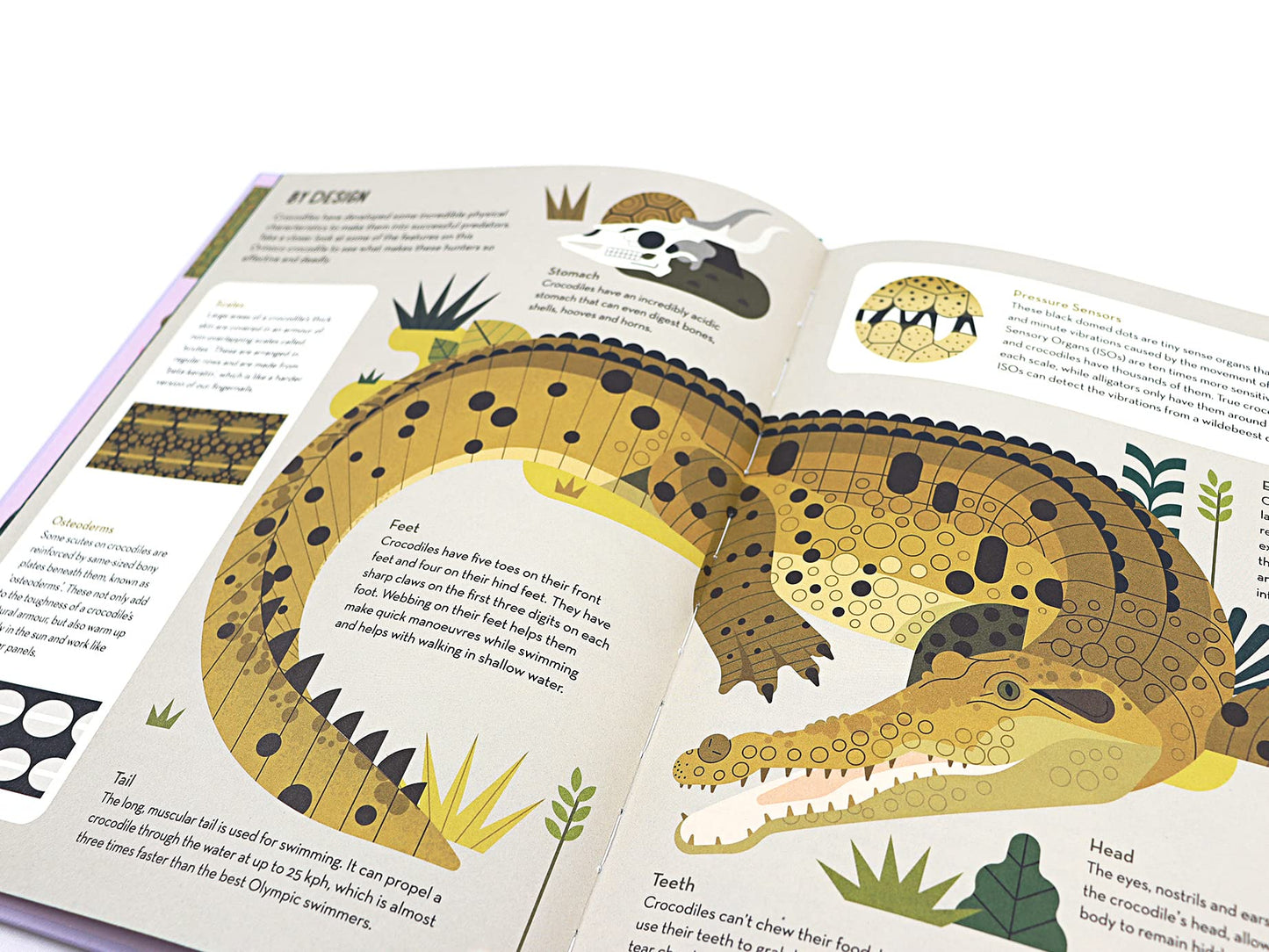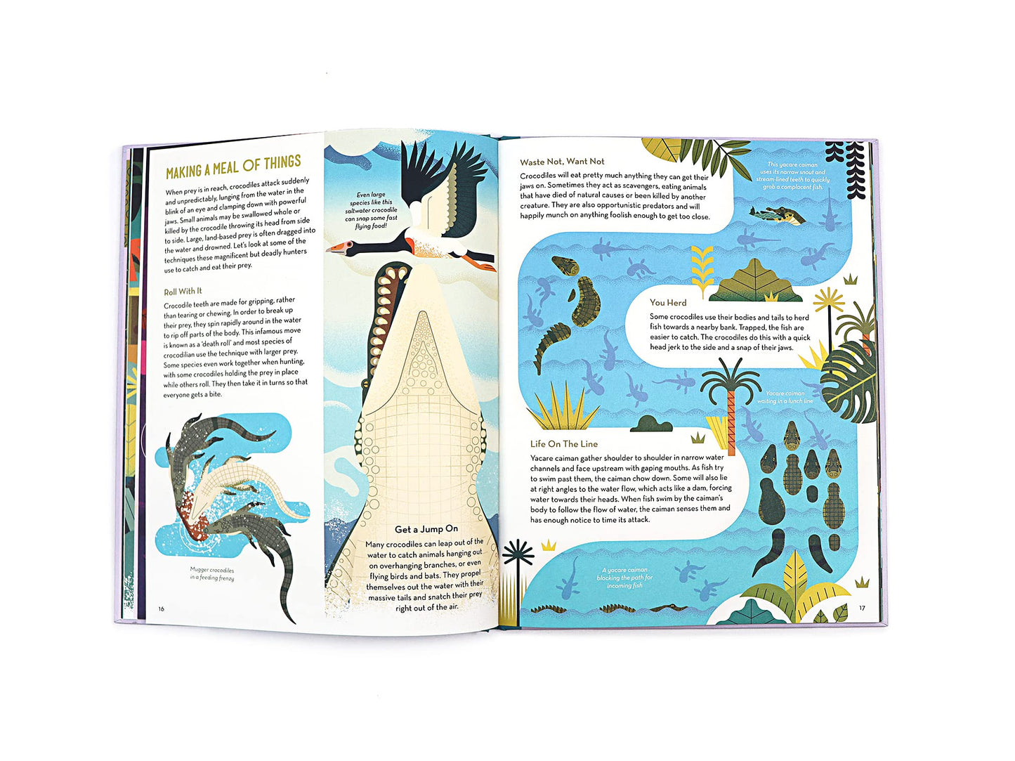 The seventh entry in illustrator Owen Davey's award-winning "About Animals" series, this one focuses on all different crocs, gators, caimans, and gharials, depicted in Davey's signature design-oriented, colorful, minimalist style.
