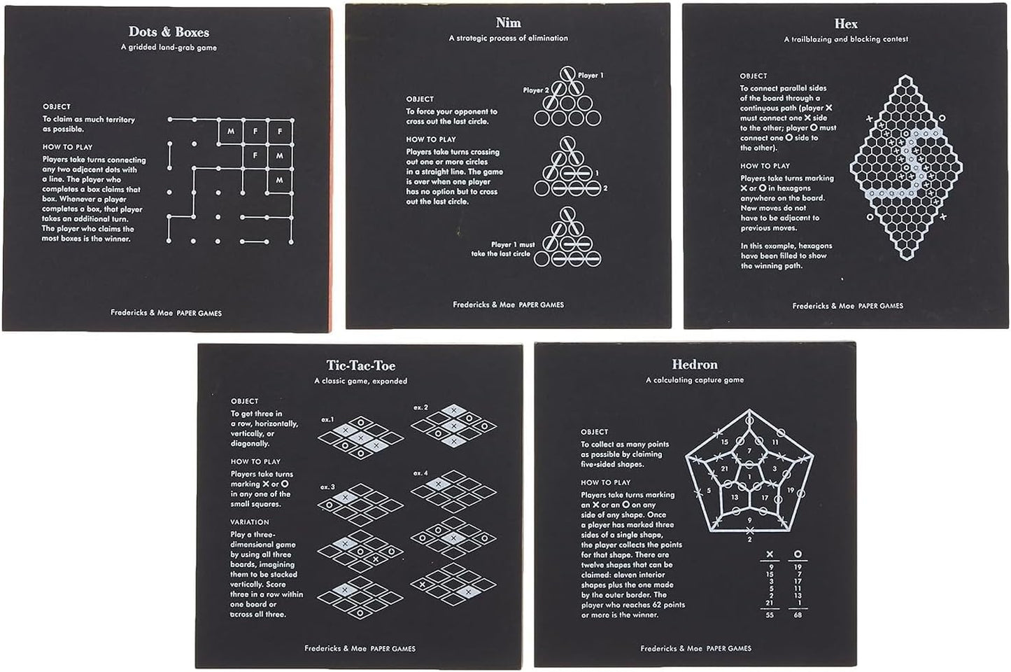 Fredericks & Mae Paper Games (Dots & Boxes, Hex, Hedron, Nim, Tic-Tac-Toe)