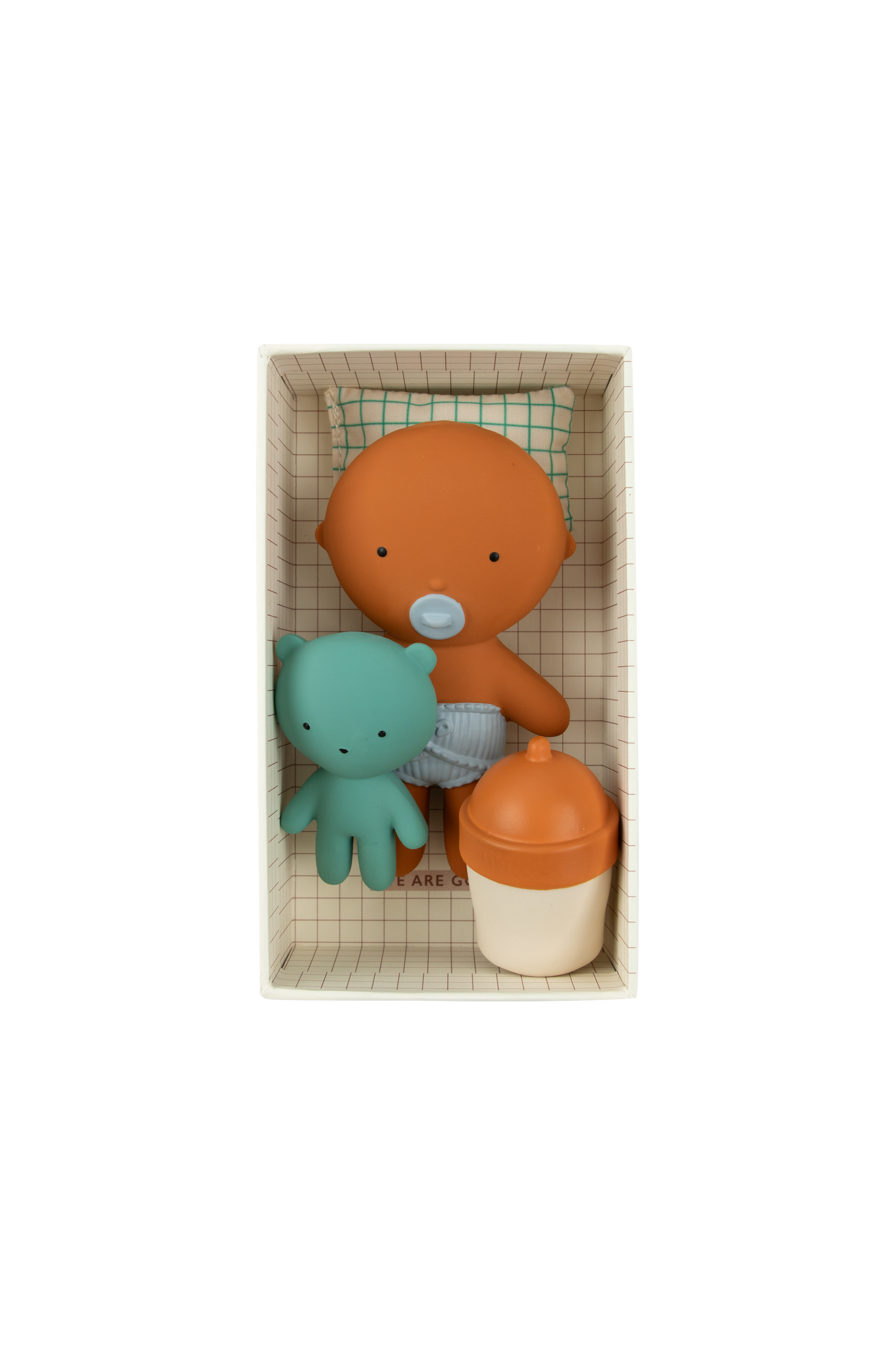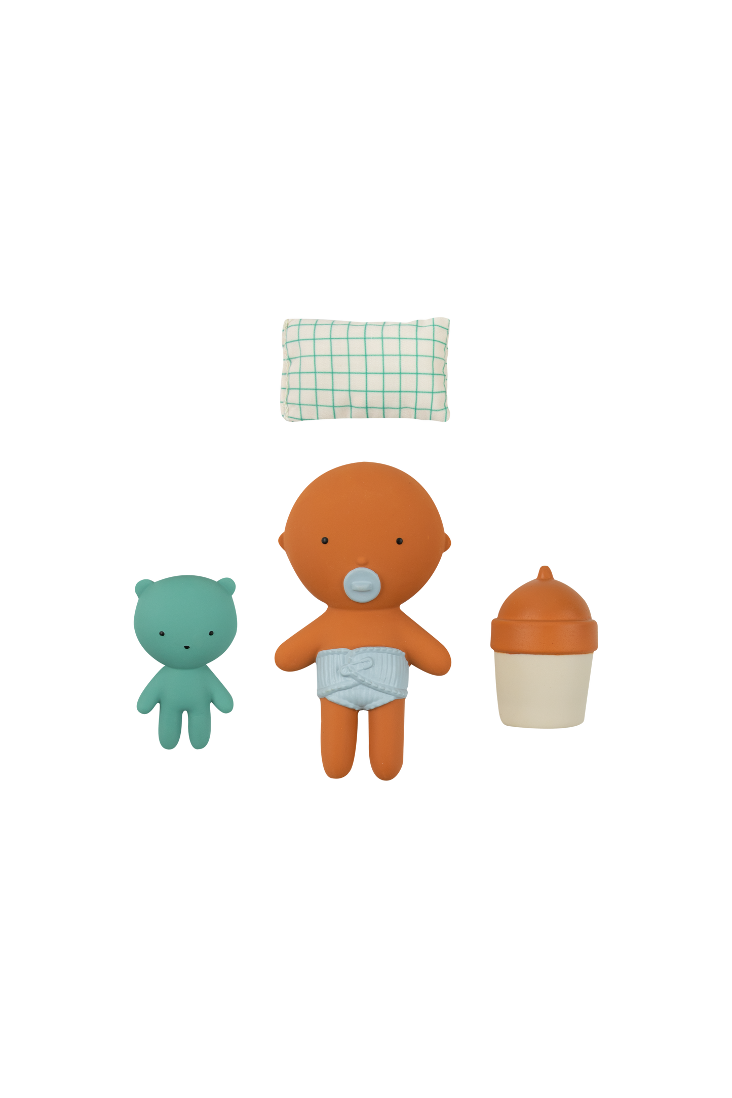Gommu family is getting bigger or maybe should we say smaller? Find Baby Gommu in POCKET size! Baby Gommu Almond comes with its best friend bear, a bottle of milk and a cushioned pillow for nap time. All these toys in one carboard bed for long hours of play!