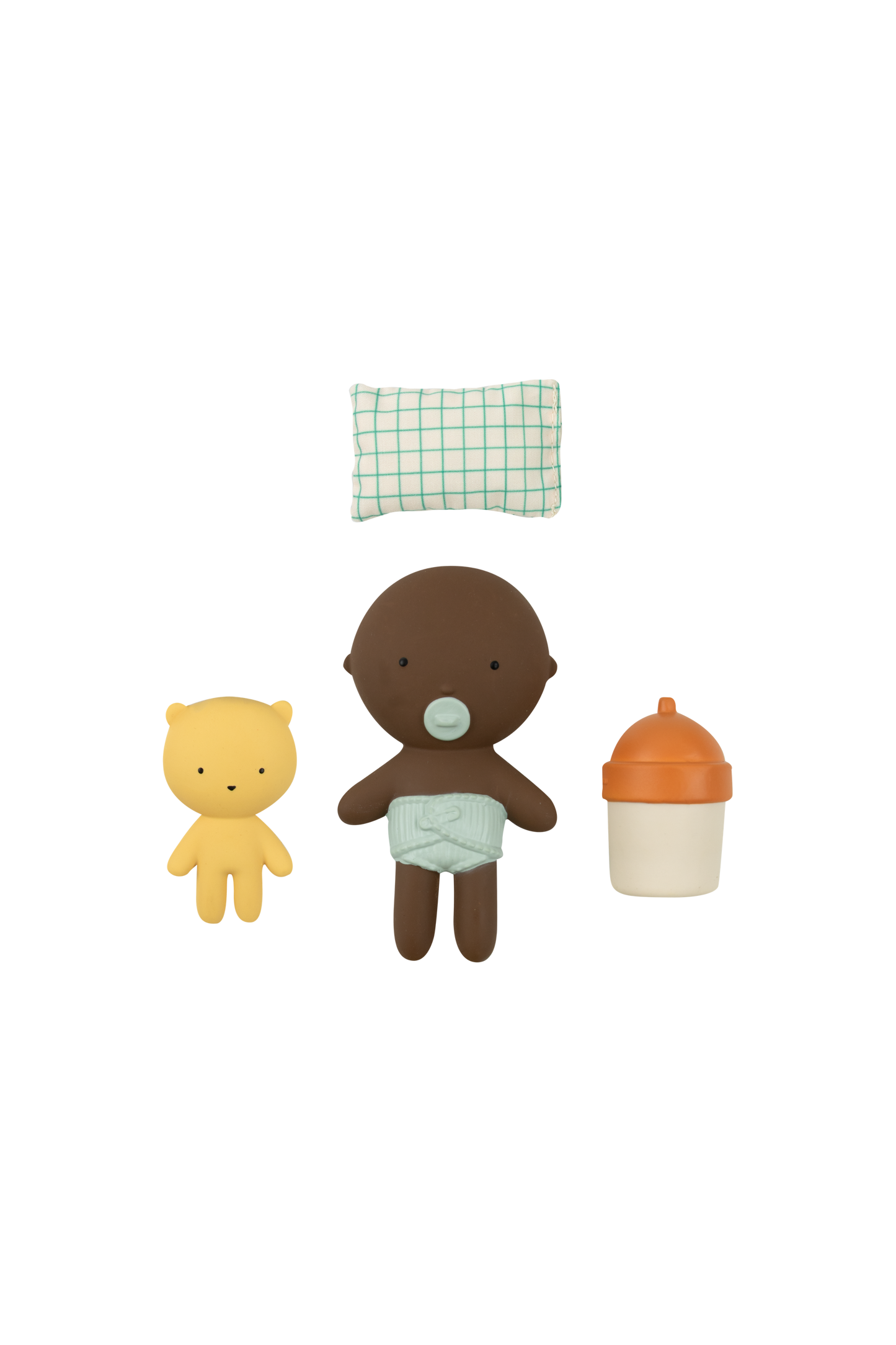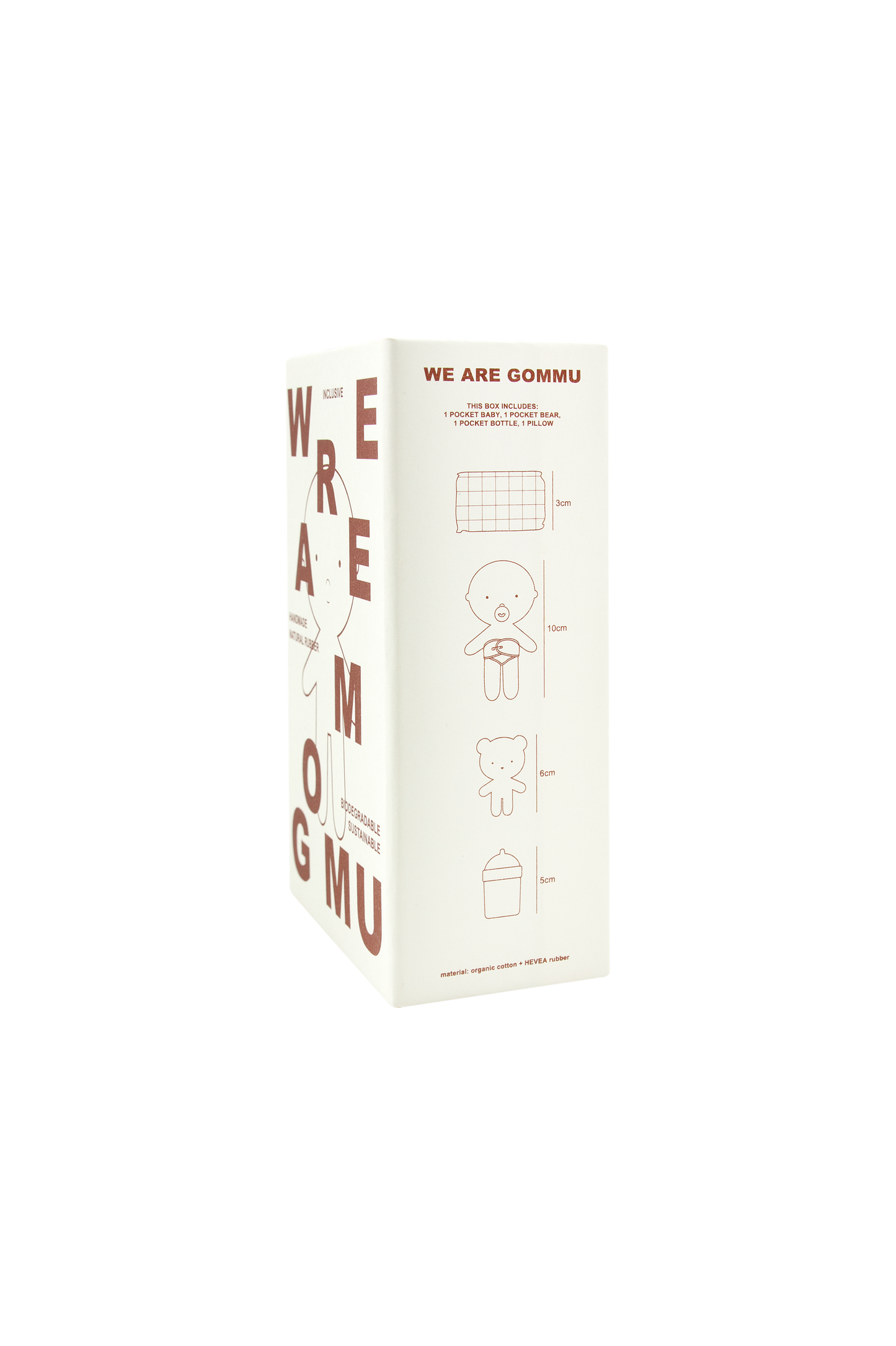 Gommu family is getting bigger or maybe should we say smaller? Find Baby Gommu in POCKET size! Baby Gommu Honey comes with its best friend bear, a bottle of milk and a cushioned pillow for nap time. All these toys in one carboard bed for long hours of play!