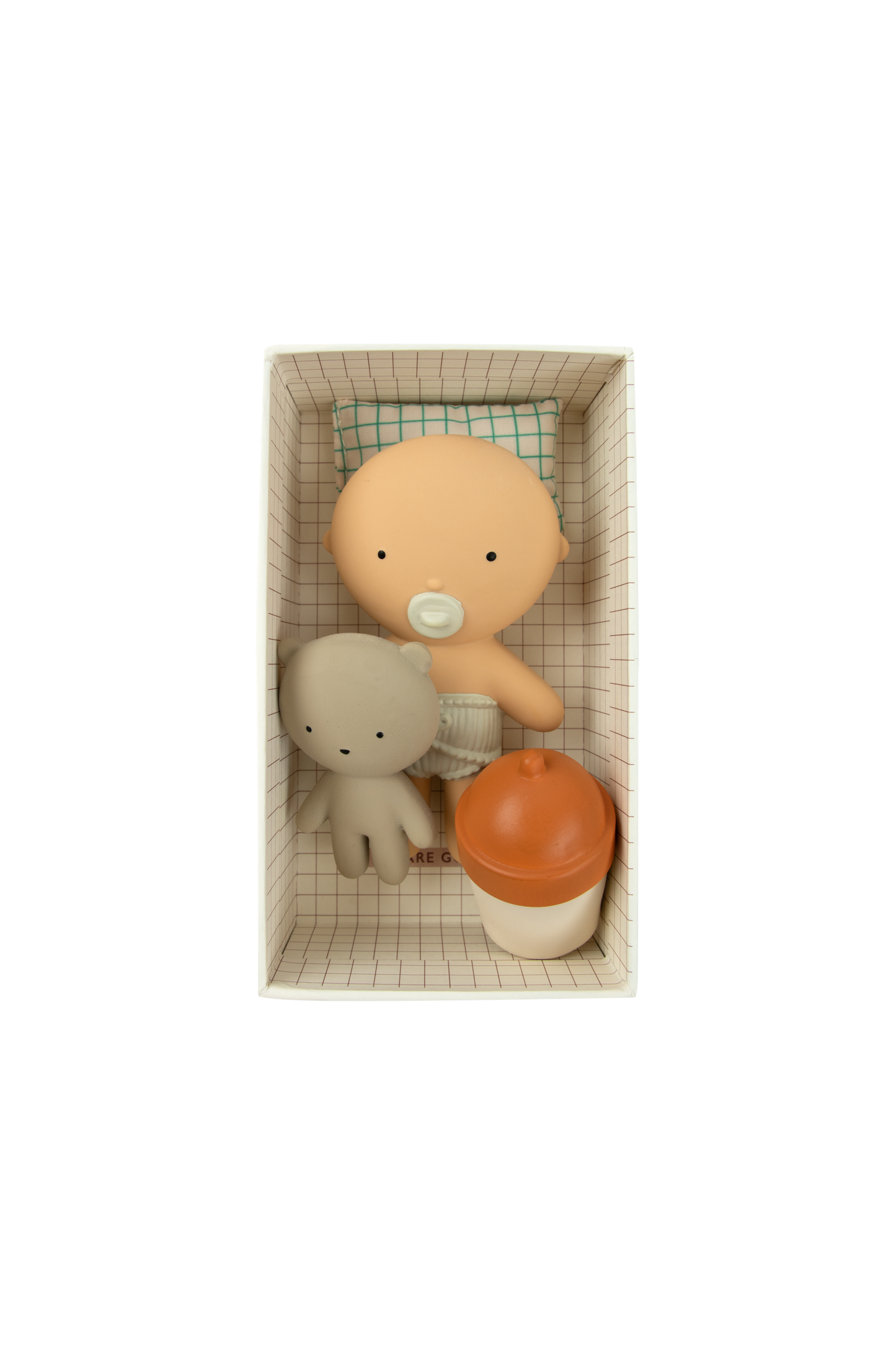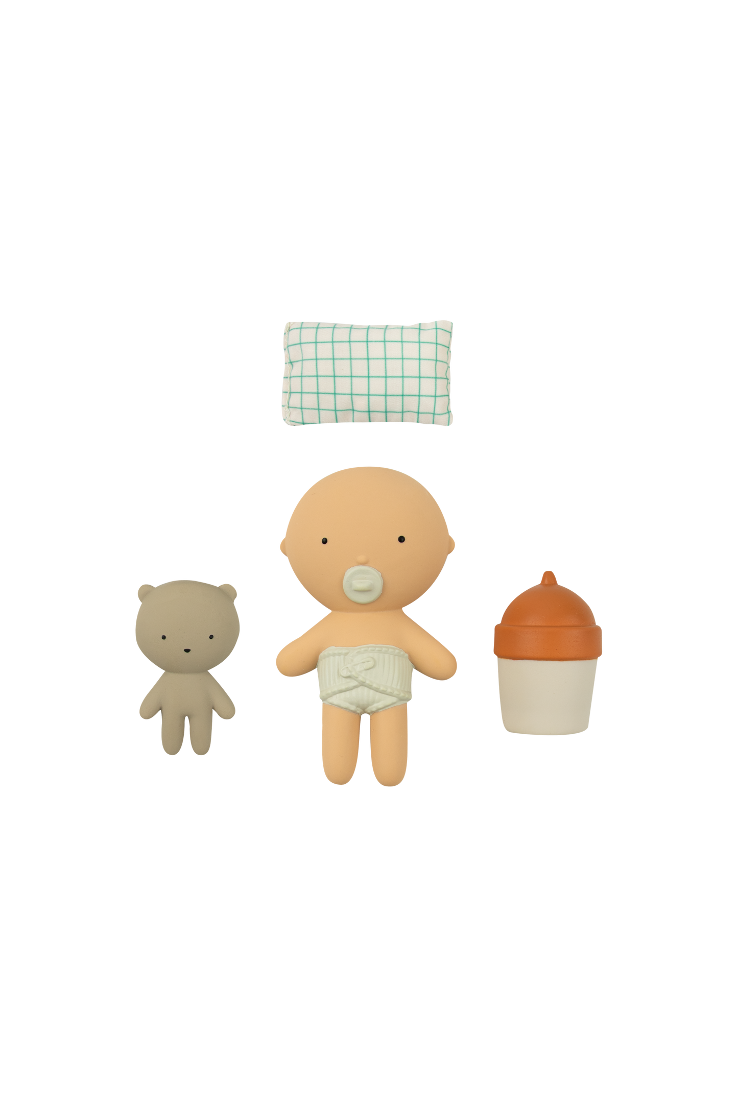 Gommu family is getting bigger or maybe should we say smaller? Find Baby Gommu in POCKET size! Baby Gommu Vanilla comes with its best friend bear, a bottle of milk and a cushioned pillow for nap time. All these toys in one carboard bed for long hours of play!