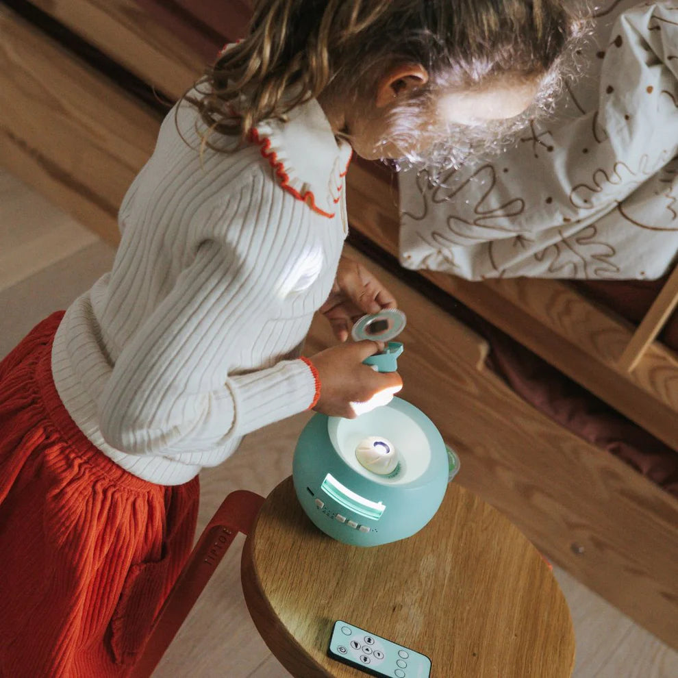 Bring magic into your child's bedroom with KIDYSTAR! This enchanting projector transforms walls and ceilings into a captivating light show with its six interchangeable discs. With its illustrated educational booklet, it stimulates curiosity while soothing minds at bedtime. An invitation to calm, daydreaming and discovery... for nights full of sweet dreams.