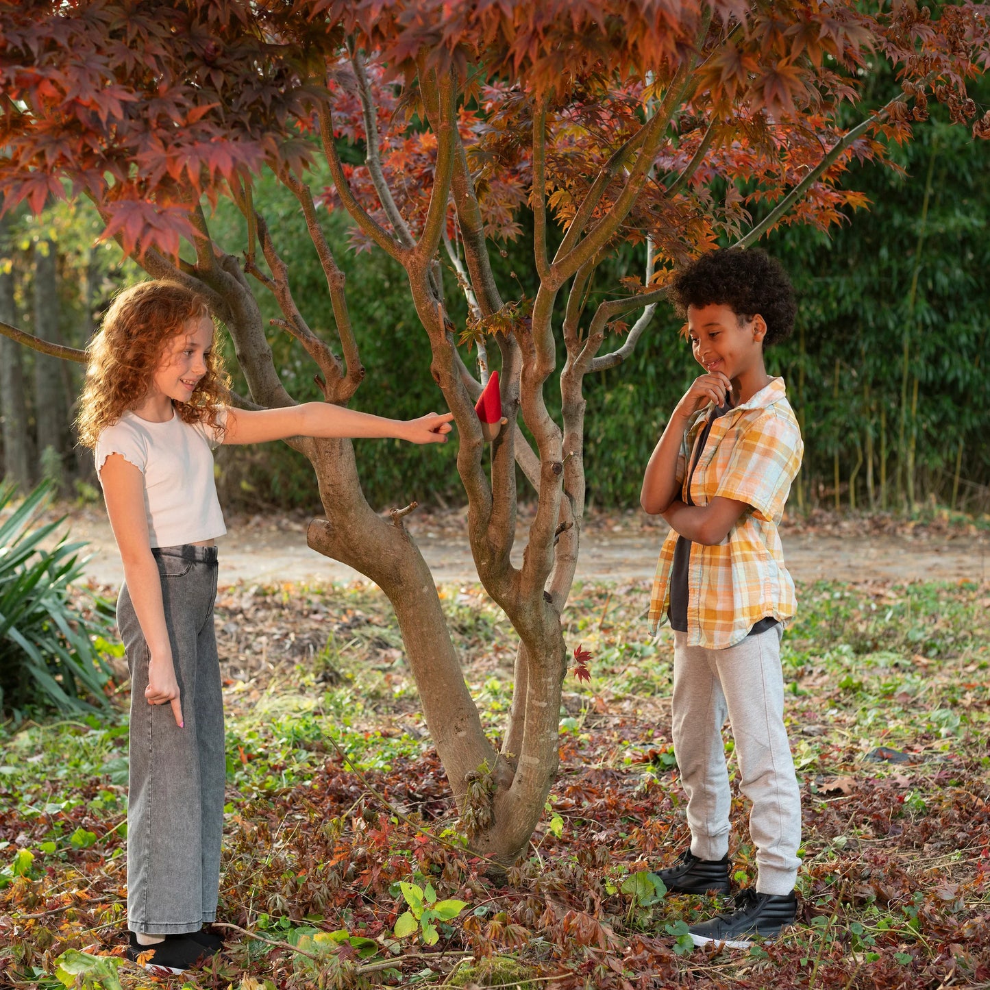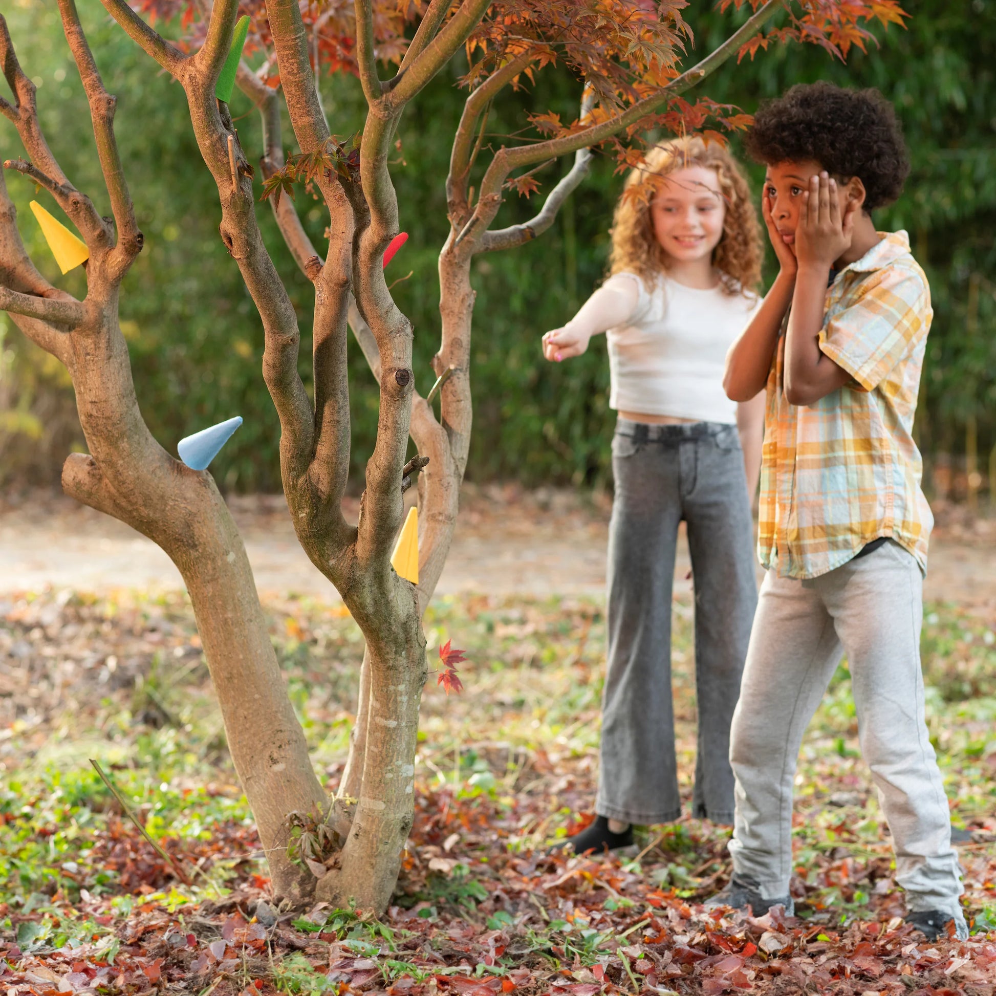 A hide-and-seek game with friends and family. Go outside and hide hats in nature, then take turns finding them.