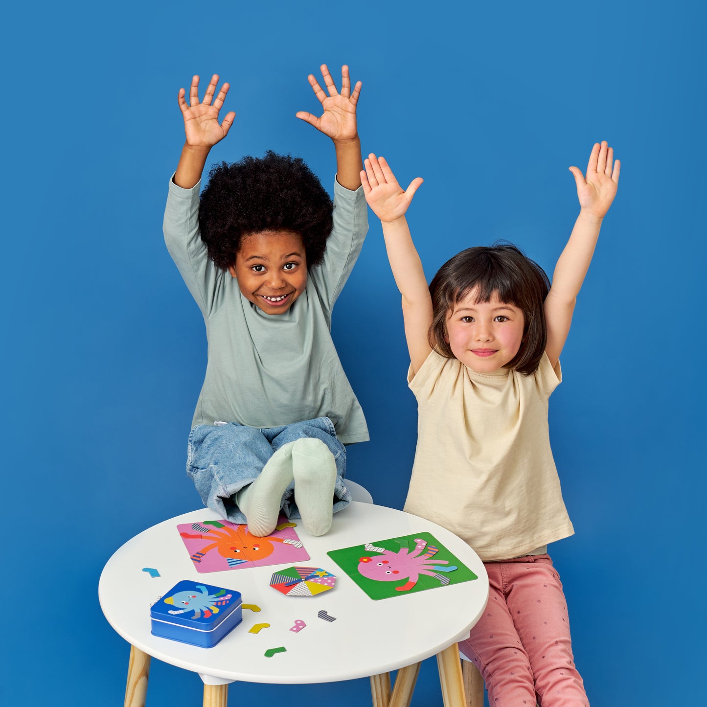 Ideal for on-the-go! Take turns to spin the wheel and grab the matching print sock to dress your octopus!
