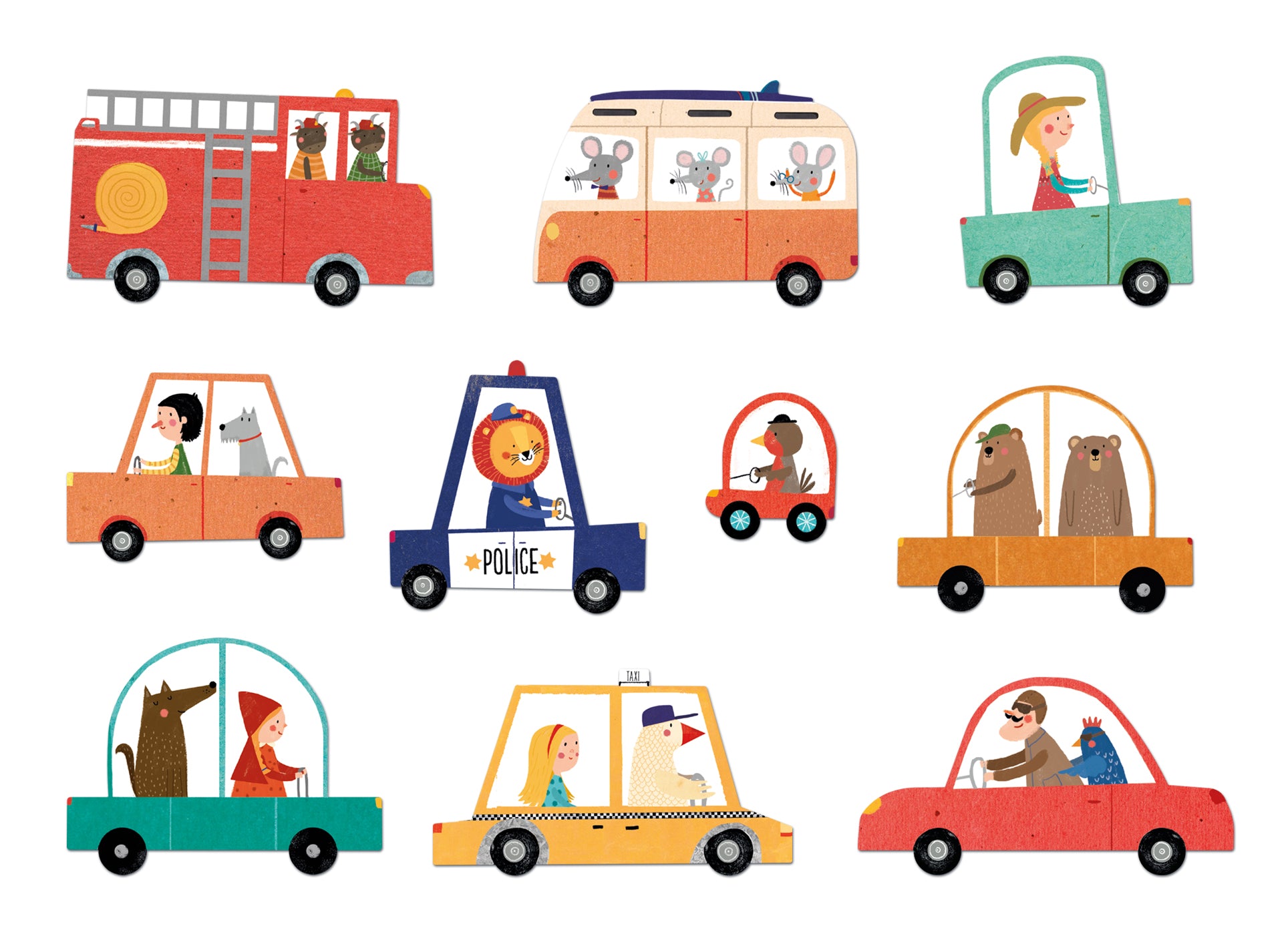 Cautious drivers, happy cyclists and trucks loaded with ice cream. May the route never end! Once the puzzle is assembled, an observation game. Who will be the first to find the 10 drivers?
