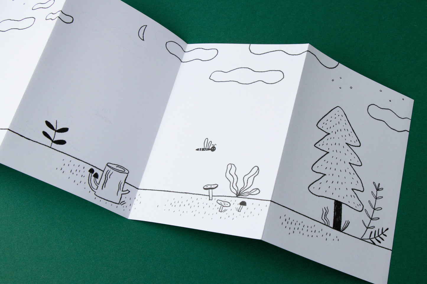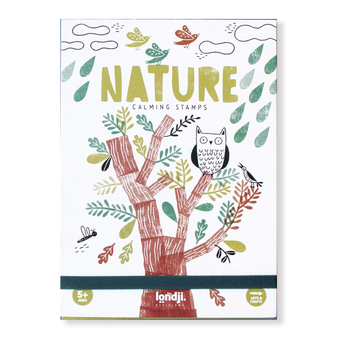 Relax by stamping repeating patterns of trunks, leaves and birds and create… your very own natural landscape!