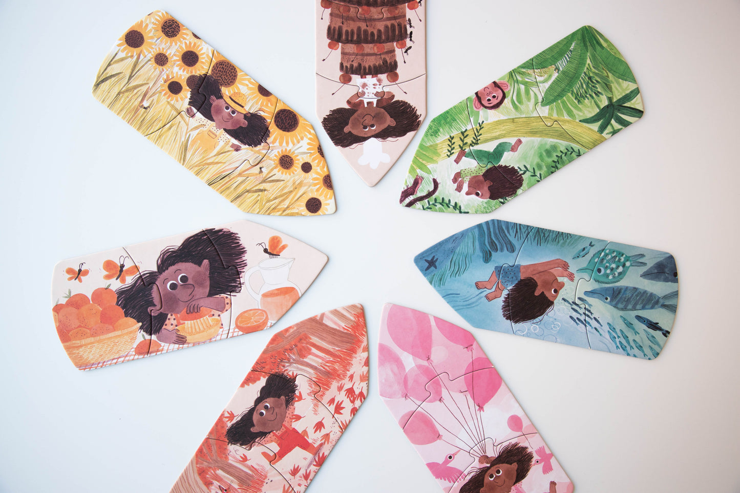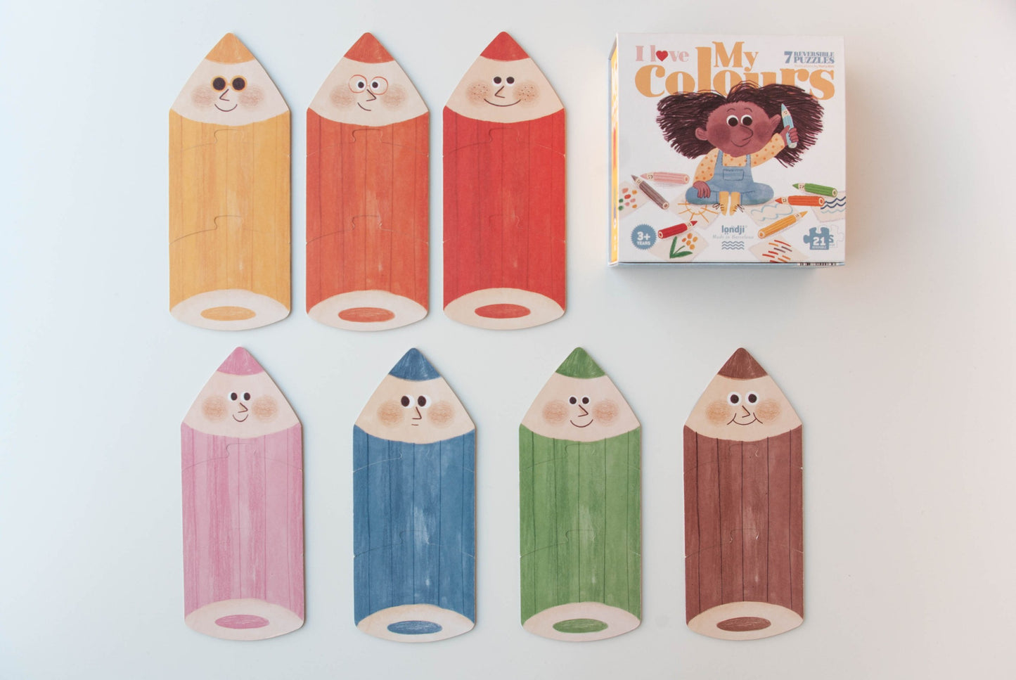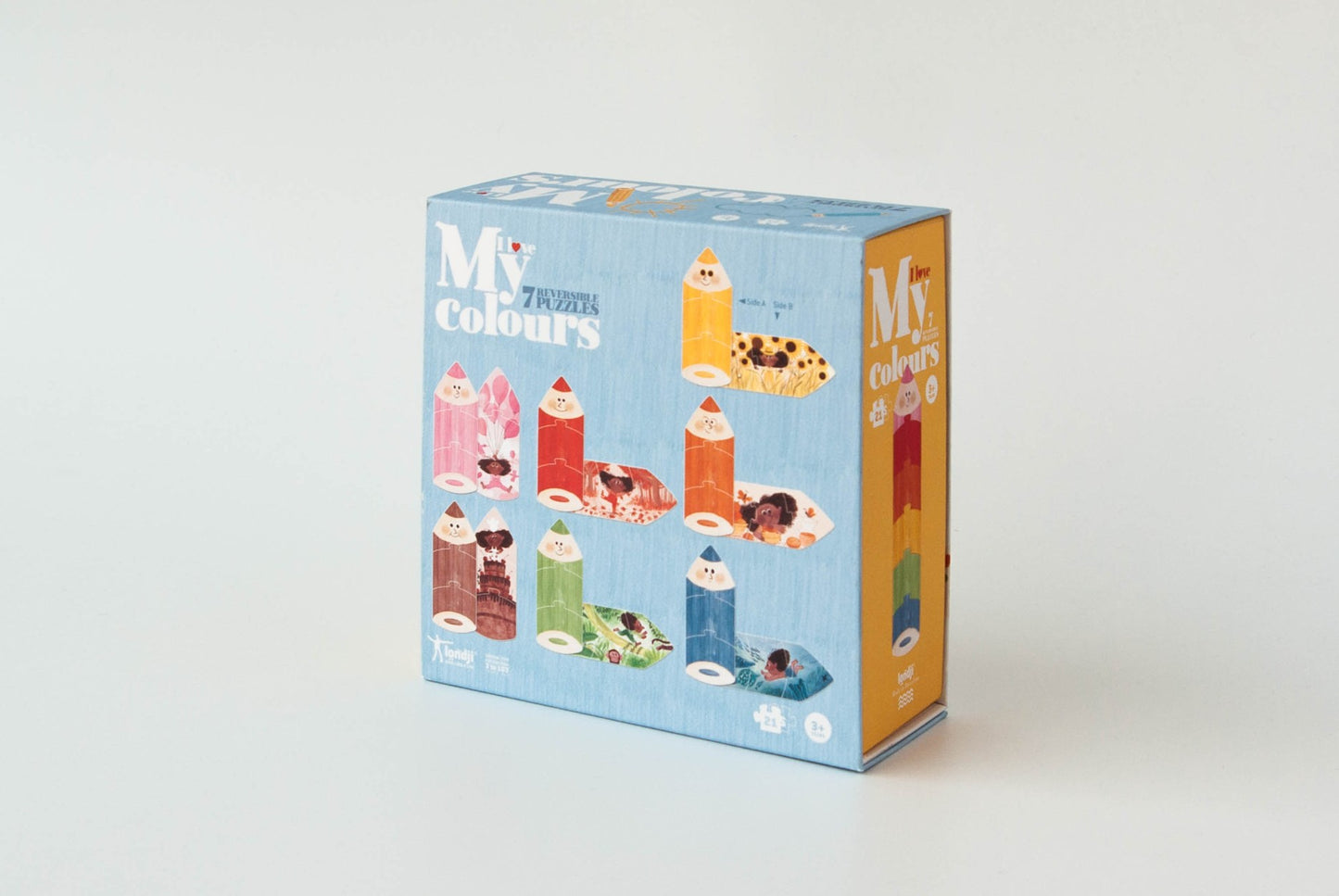 6 colorful reversible puzzles so that the little ones in the house have fun with the colors they like the most.