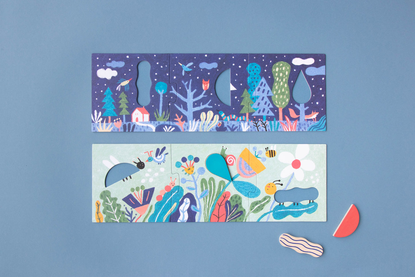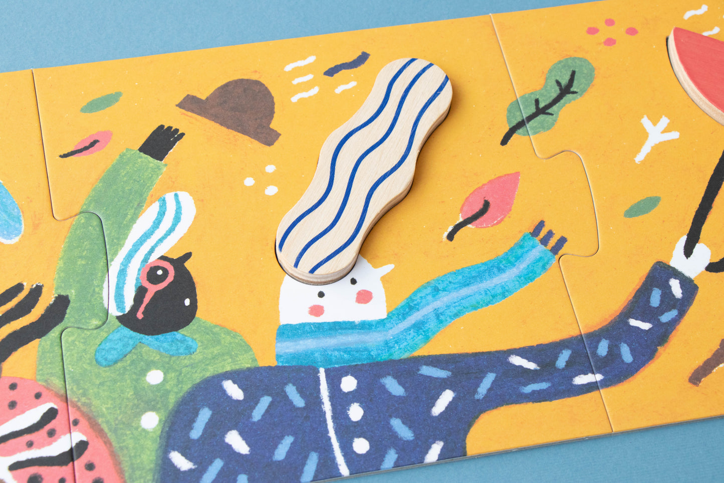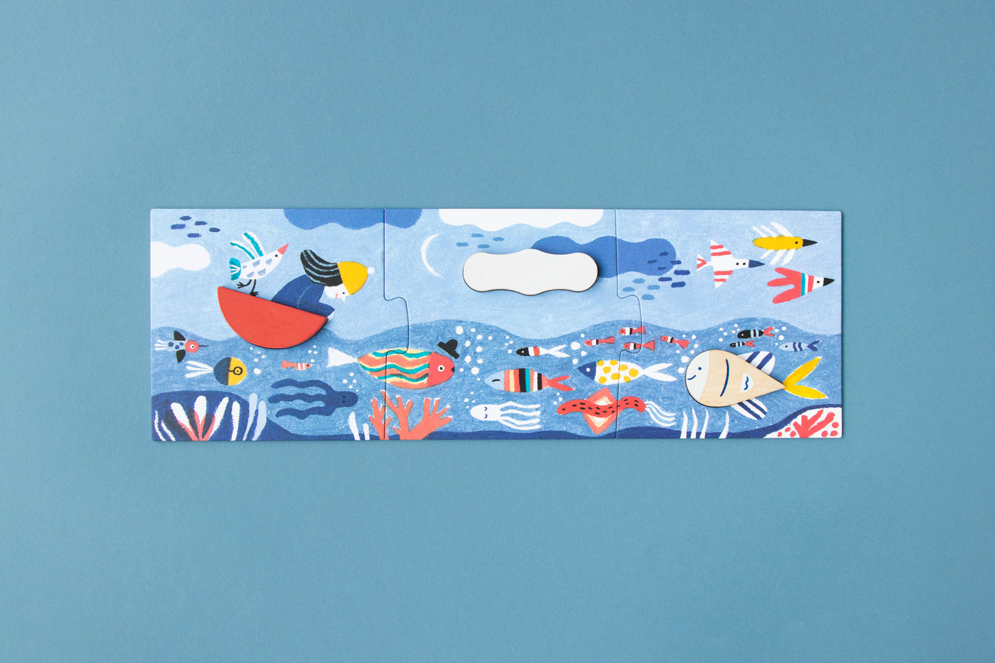 Is it the moon or a boat, a cloud or a caterpillar, a fish or a drop of water? A game for the imagination! Assemble the puzzles and insert the wooden pieces.