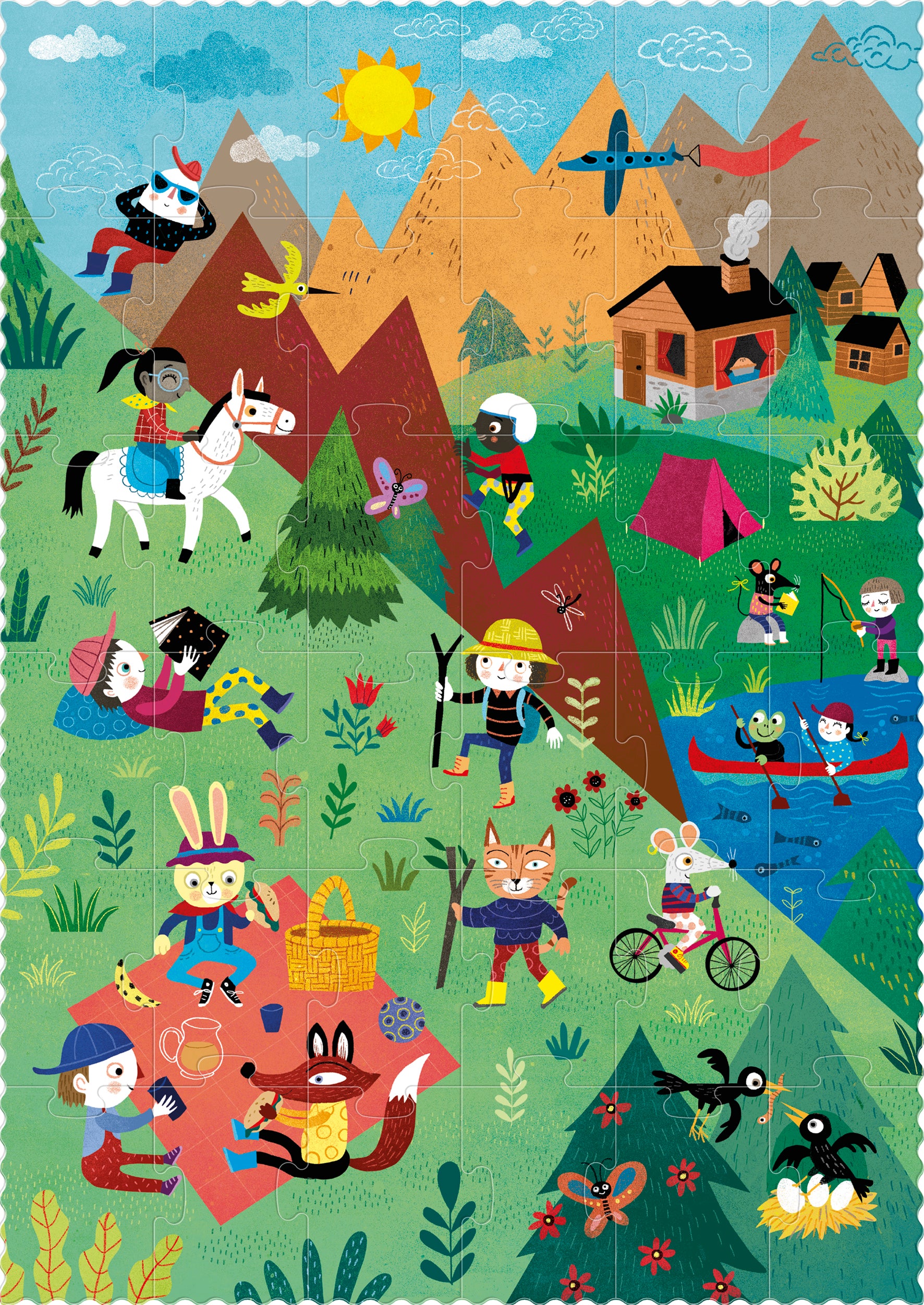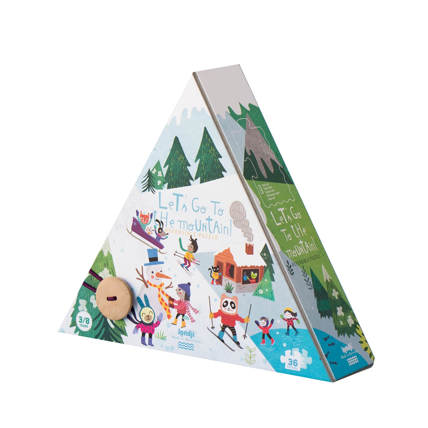 A reversible puzzle of 36 pieces. On one side we will slide down the frozen mountain in winter, on the other we will dive into the summer months.