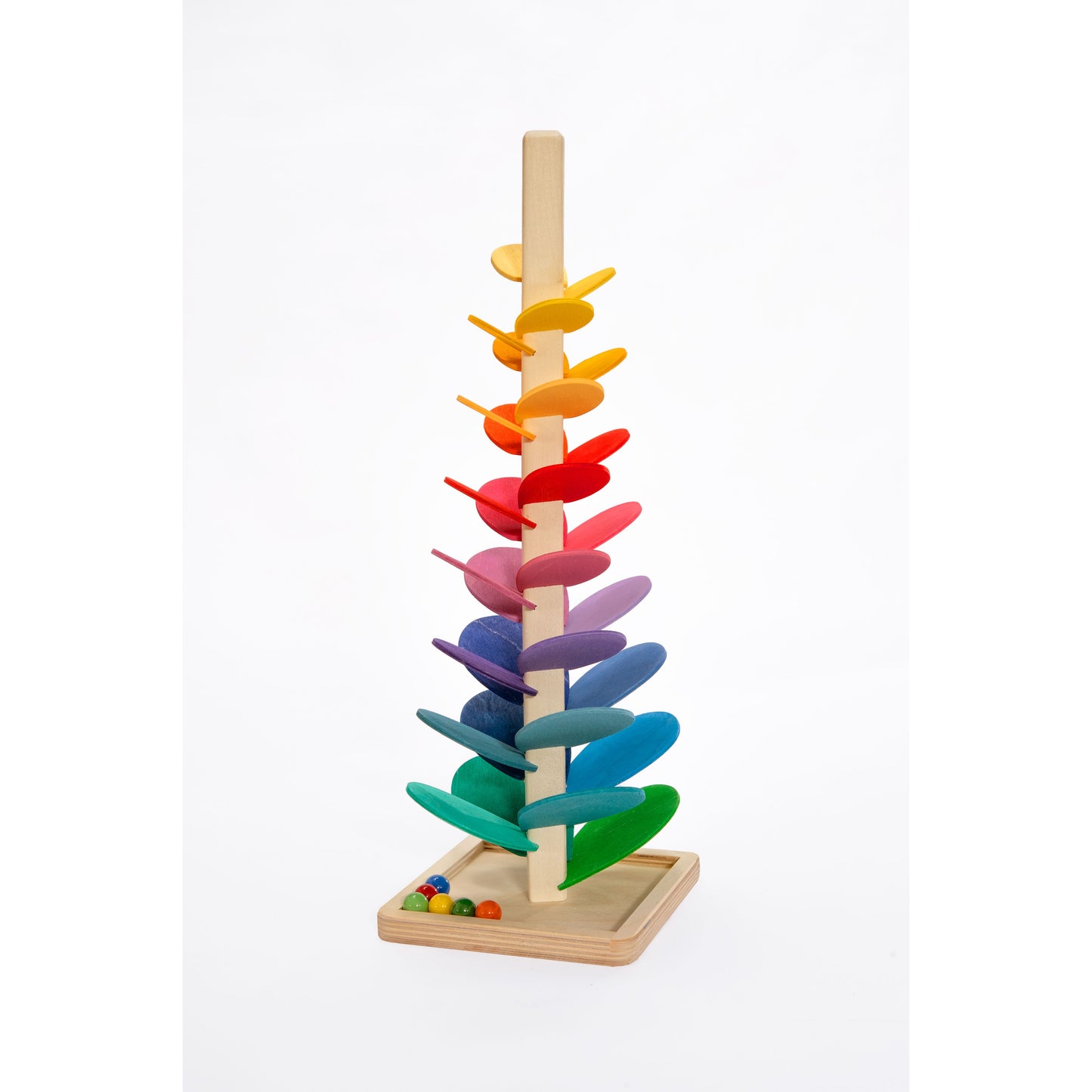 Children love to play with marble trees, watch the marbles run down, hear the tones of the leaves. The leaves give changing sounds from the top to the bottom of thetree. Elegant design and precise manufacturing provide a decorative touch to this item. Attractive also to grownups. It is so much more than a toy, but also an artwork for your home.