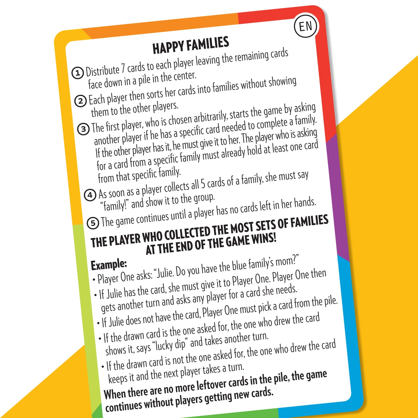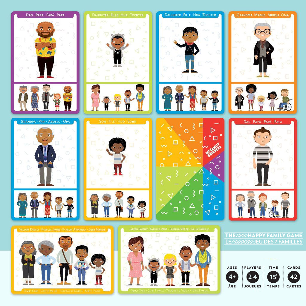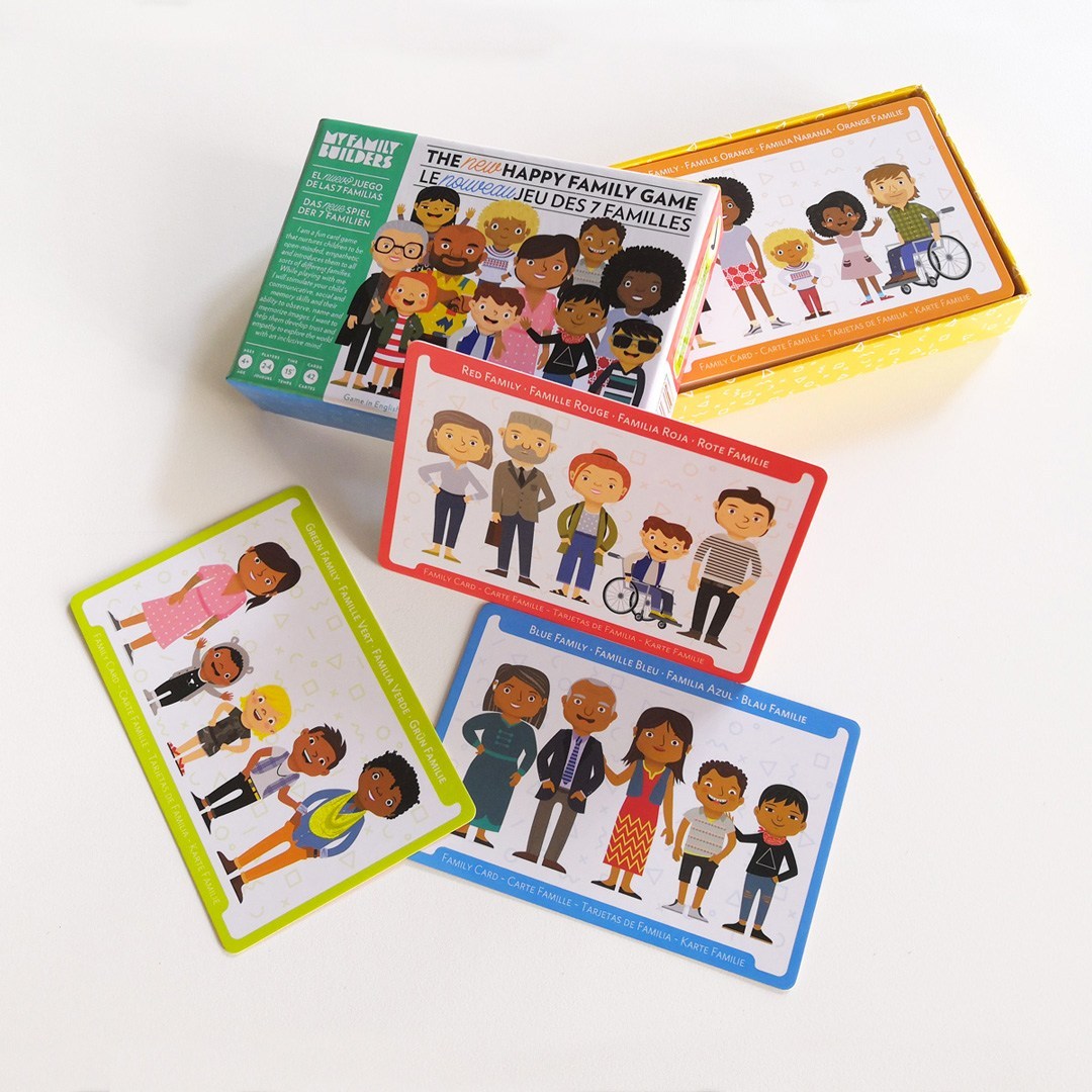 DEAL EVERYONE IN for fun games that evolve into teachable moments about race, cultural diversity, inclusion and stereotypes. The Happy Family Card Game uses characters of all ages, cultures, ethnicities and genders to convey that families take different forms and observe many customs.