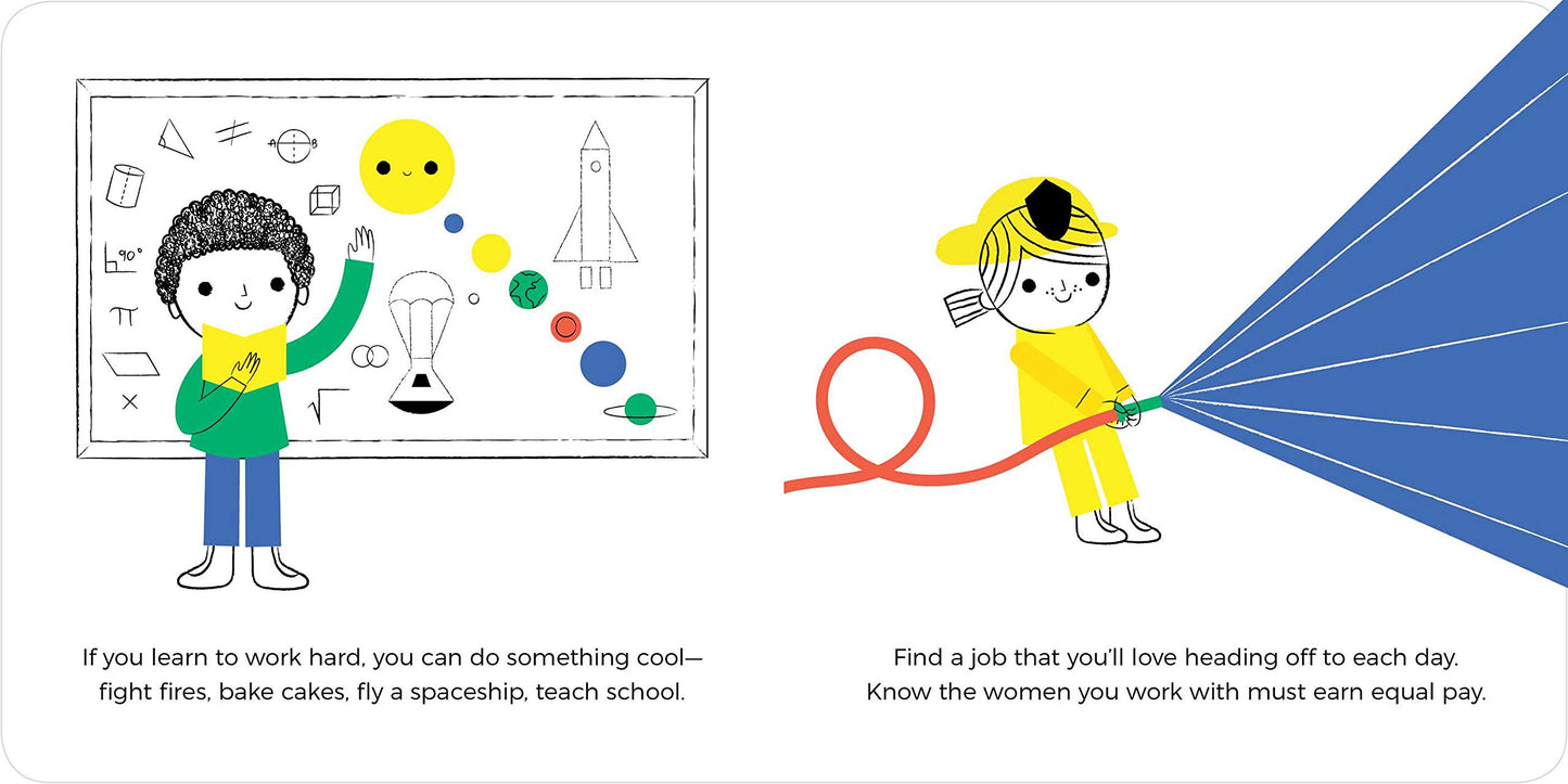 Simple illustrations paired with engaging, rhyming text make the compelling, age appropriate argument that girls and boys are equal, plain and simple. Humorous, familiar scenarios are treated as teachable moments for very young boys (ages 0-3) who will ideally grow up without ever questioning women's equality. From "no means no," to "women's rights are human rights," important, grownup ideas are made clear and fun for young, impressionable minds. This is the book every mom should read to her son!