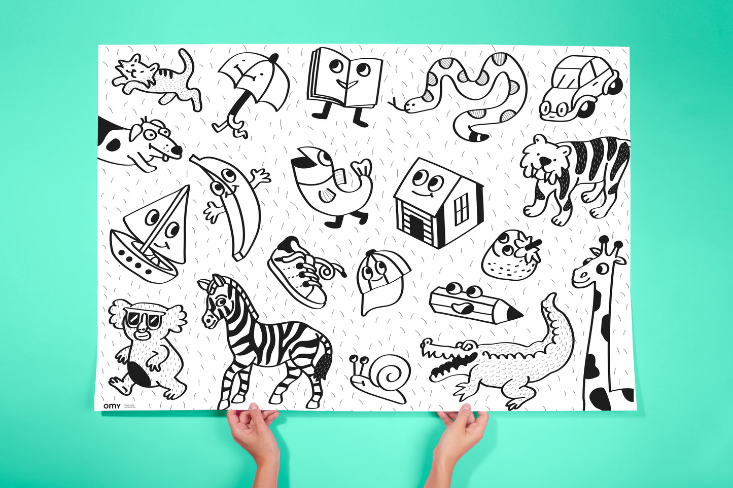 Folded in a beautiful colorful pouch, it's a fun, quirky and graphic poster, to share between all generations! A line full of humor and a multitude of details, a true graphic journey to share between all generations. A limitless artistic space for coloring alone or with others, to unfold on the ground, to hang on the wall or to use as a tablecloth.