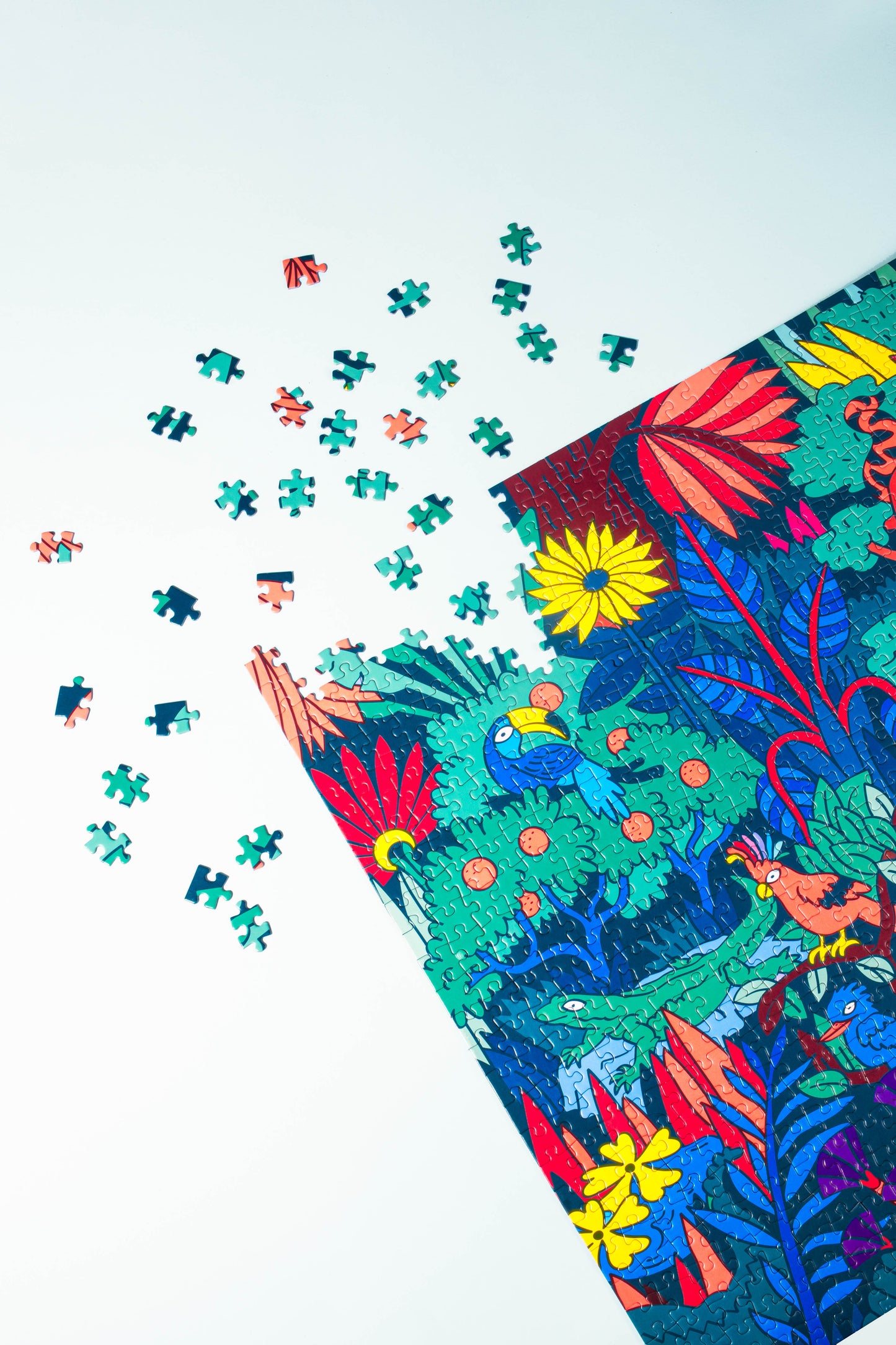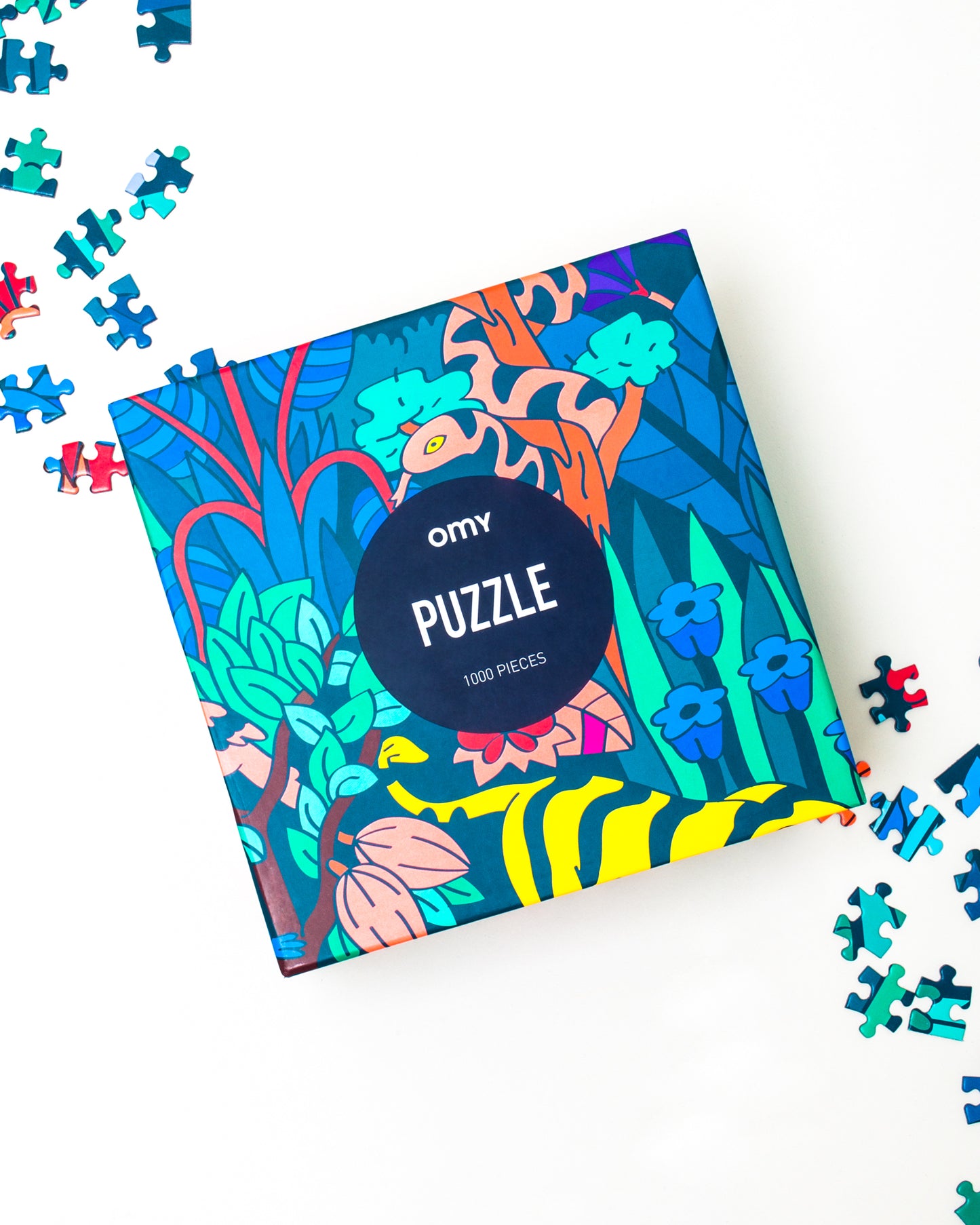 Dive into a colorful and peaceful jungle landscape puzzle of 1000 pieces. A timeless activity with a contemporary modern twist, the cube box puzzle is a great gift for good times! A graphic puzzle collection designed for bigger ones.