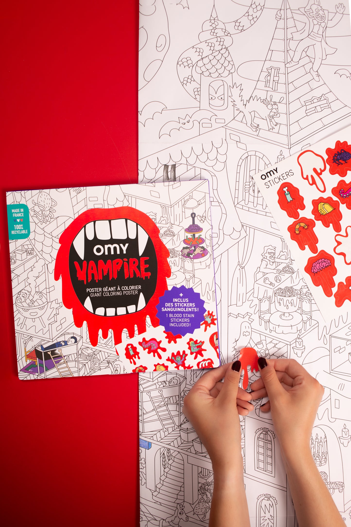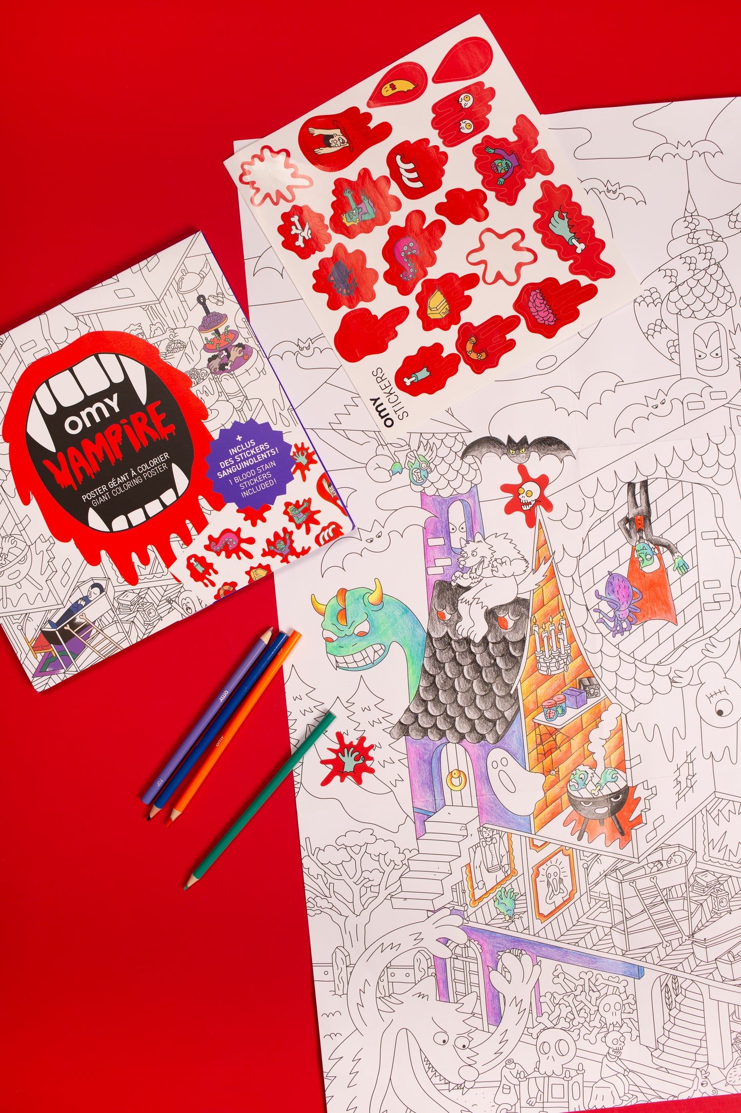 Ghosts, secret ceremonies and bloody vampires invite you for a night in the heart of an astonishing haunted castle. A line full of humor and a multitude of details, this poster promises you a graphic experience to share between all generations. A limitless artistic space for playing and coloring alone or with others, to unfold on the floor or on a table to hang on the wall.