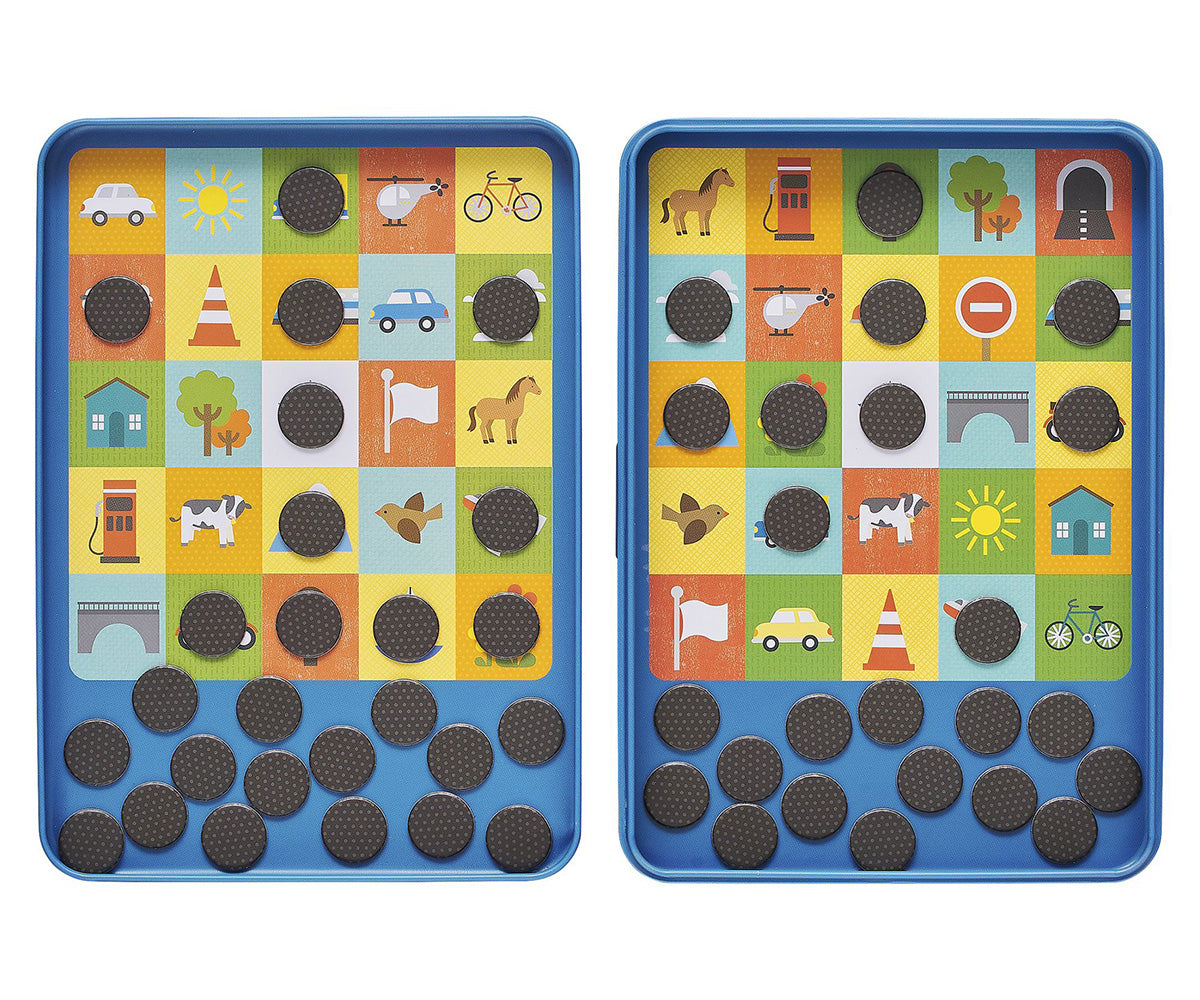 This On-the-Go Bingo Magnetic Travel Game from Petit Collage provides a magnetic twist on the classic game of Bingo! Spot a motorcycle, see a bridge, and mark it on your bingo sheet as you go. Keep your eyes peeled and enjoy the ride!