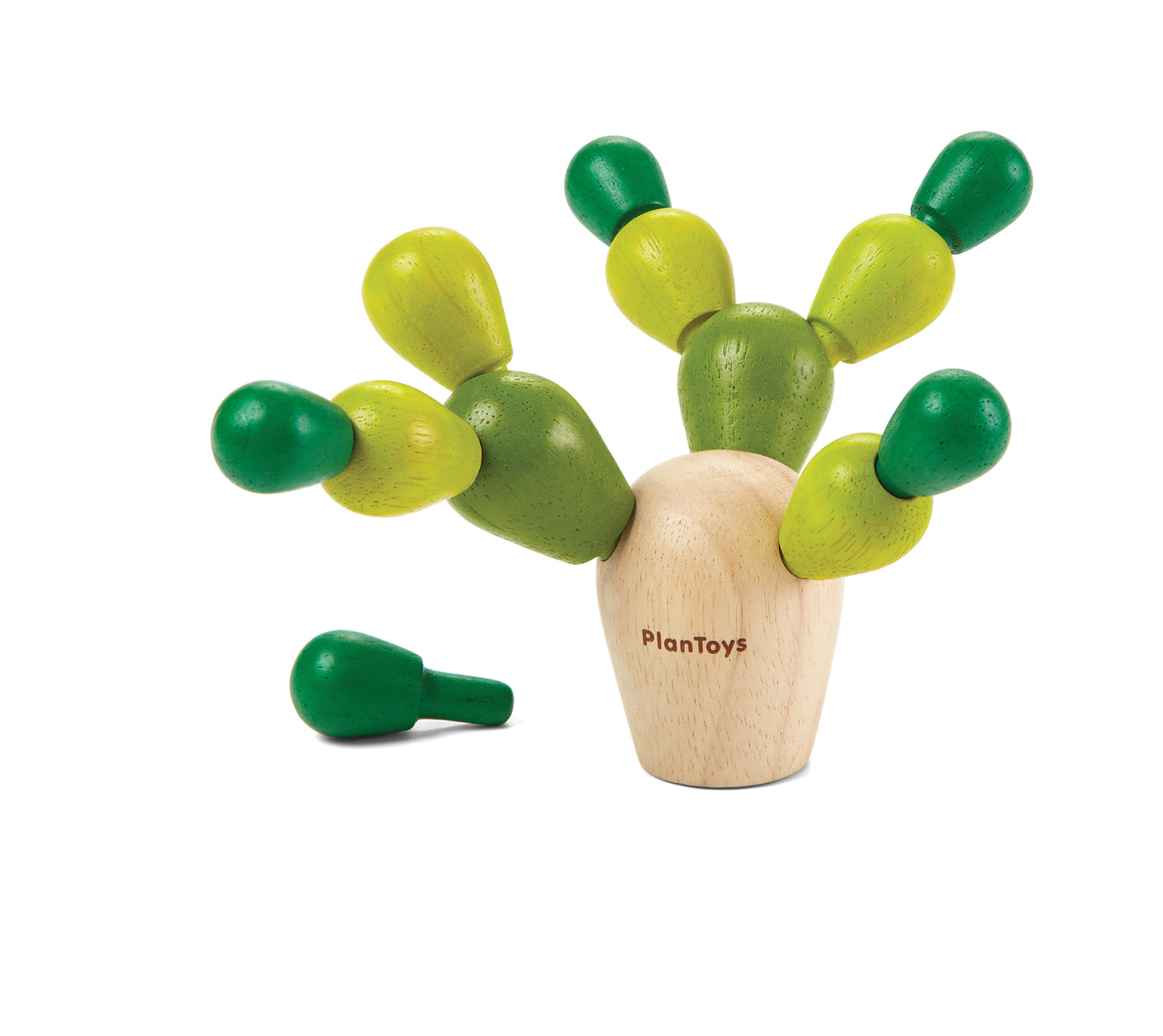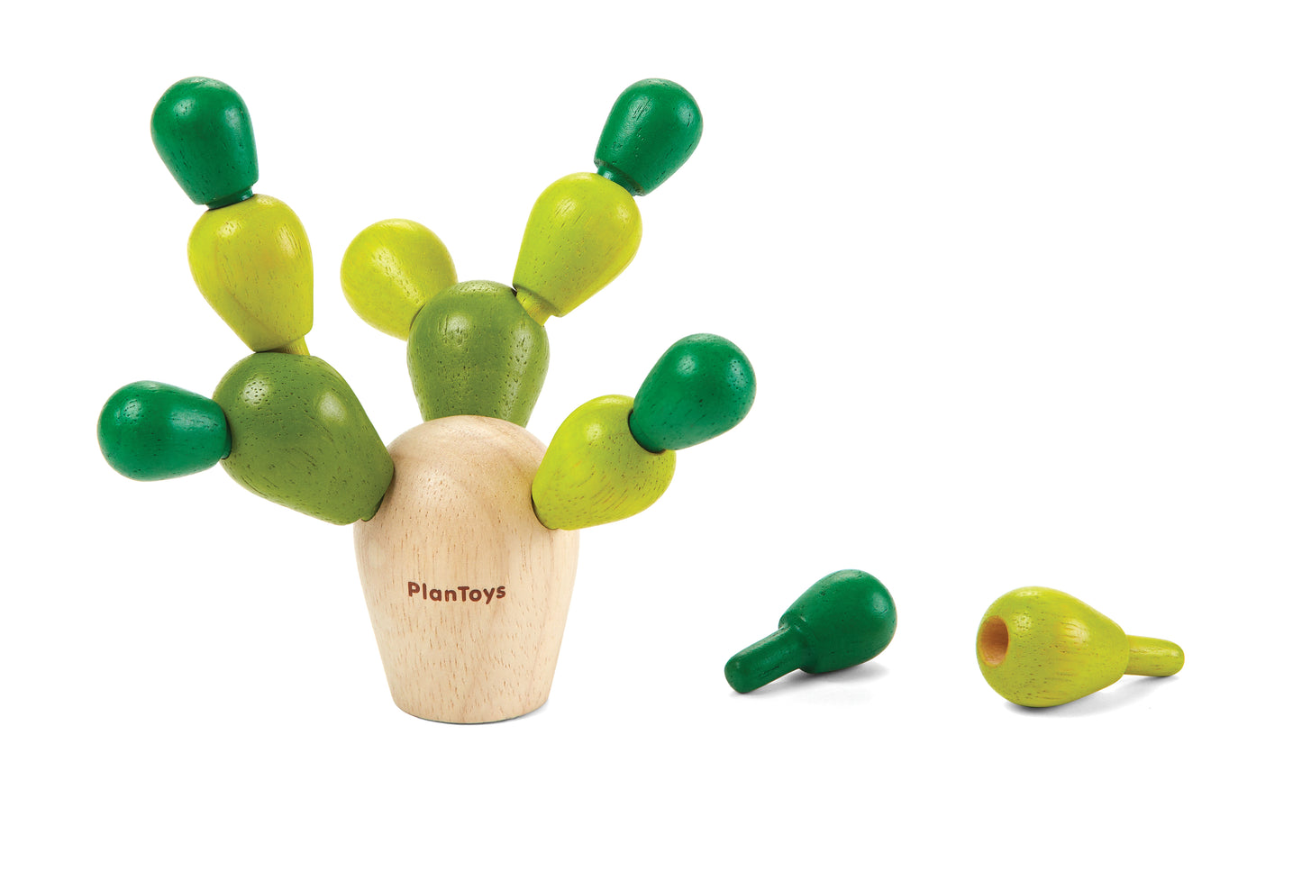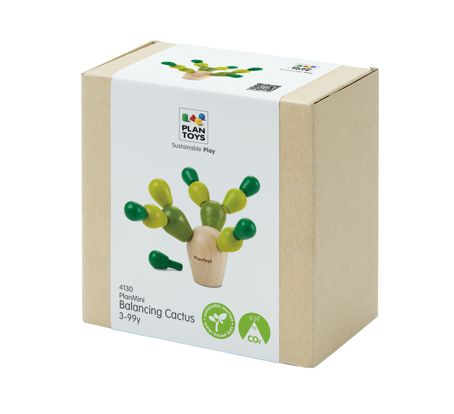 The Plan Toys Balancing Cactus in super cute minature size. A 13 piece wooden cactus that can be built up in various formations that will either balance or tumble the whole thing over. Children can experiment with different shapes to see what works and what doesn't. You can play a game where each player adds one piece at a time making sure the cactus does not fall and also playing in reverse taking one piece away at a time. This toy will appeal to children demonstrating the positioning schema - balancing, sorting and stacking toys and objects in particular order or place.