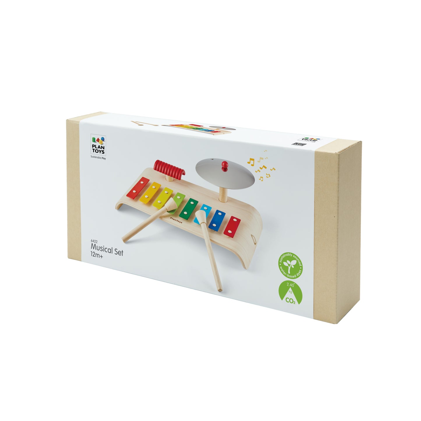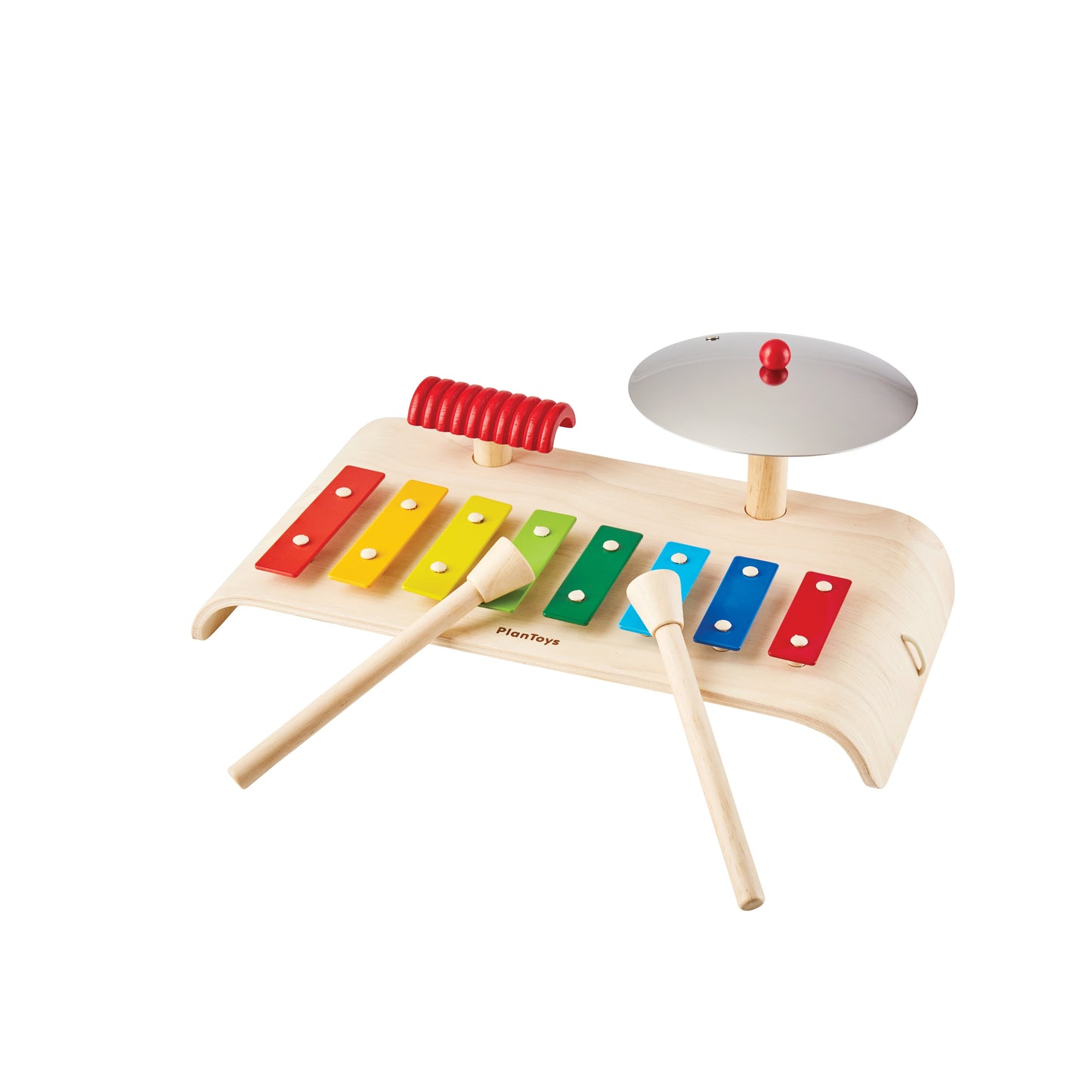 - The PlanToys Musical Set comes with 3 different ways to create music - the xylophone, cymbal and the guiro