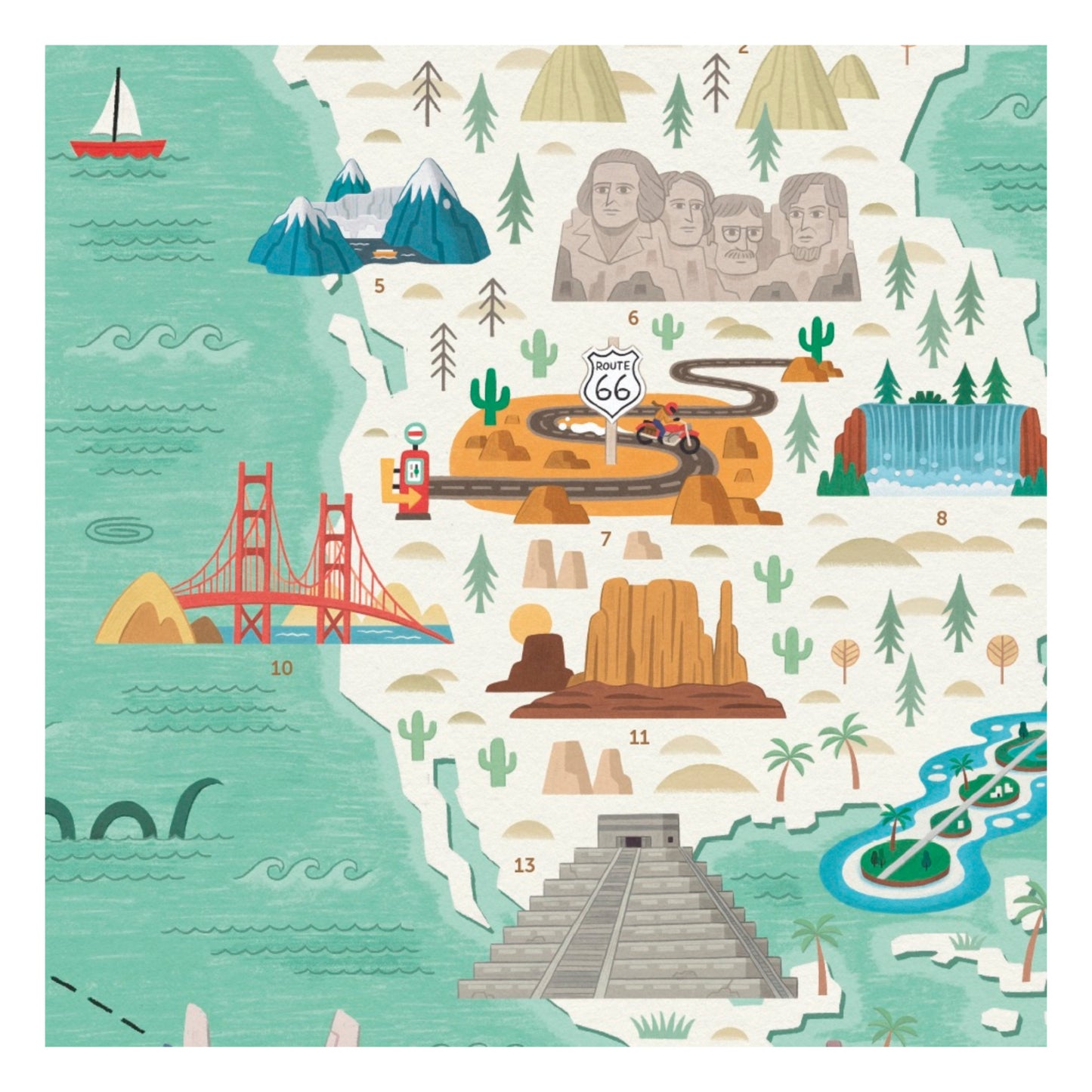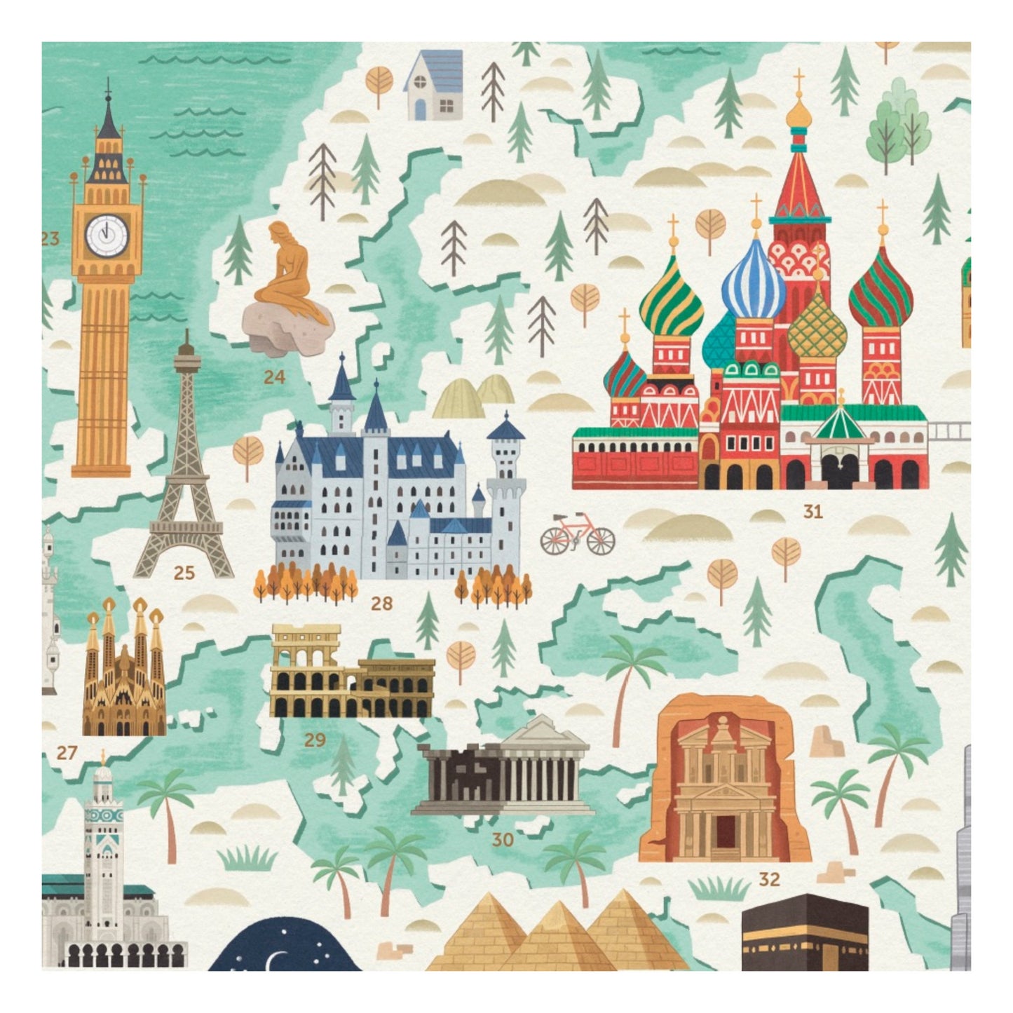 A must-have educational poster to discover the greatest monuments and landscapes in the world. To be completed with large reusable stickers.