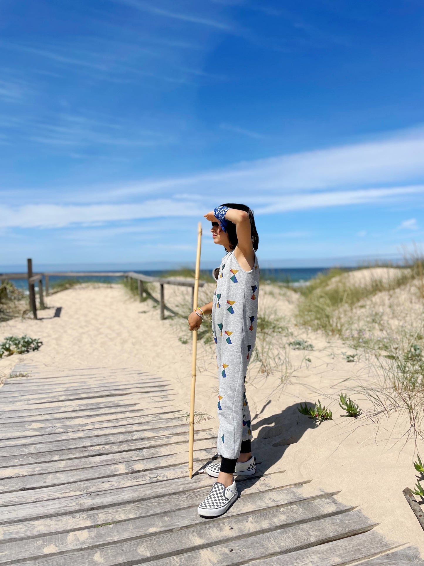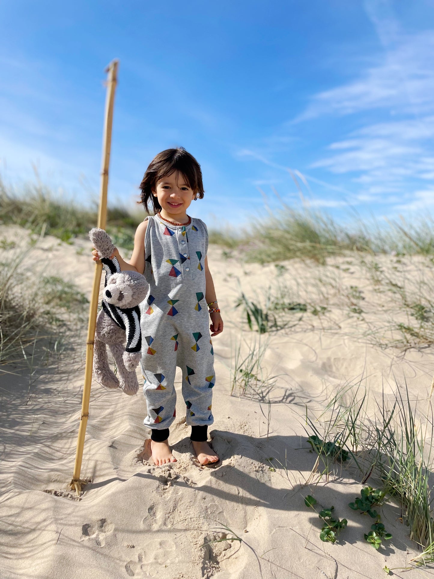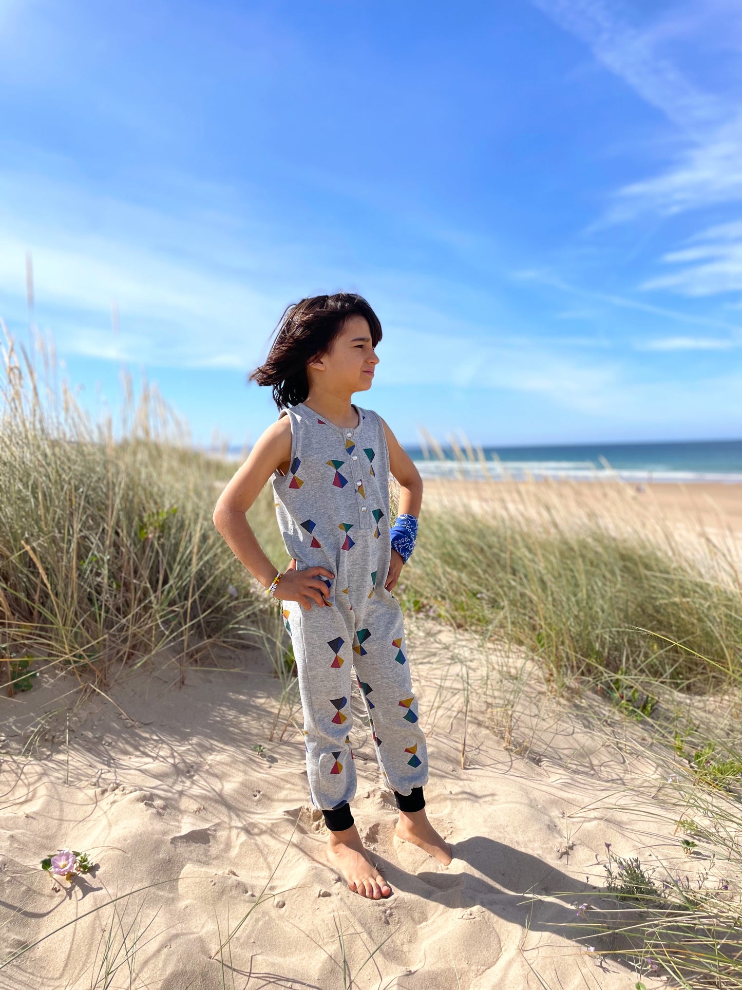 The jumpsuit, no sleeve and long legs is perfect to play around in all day.