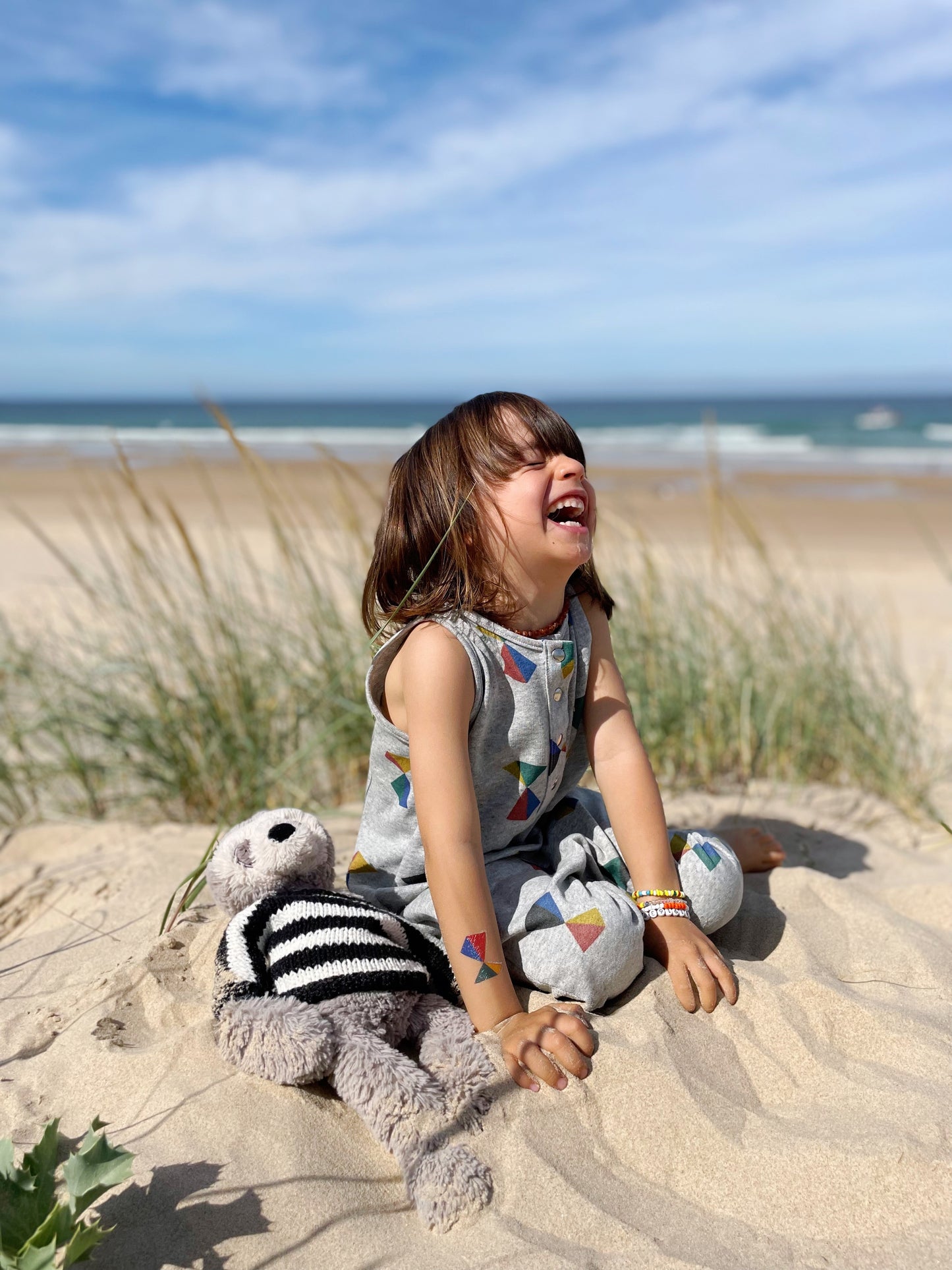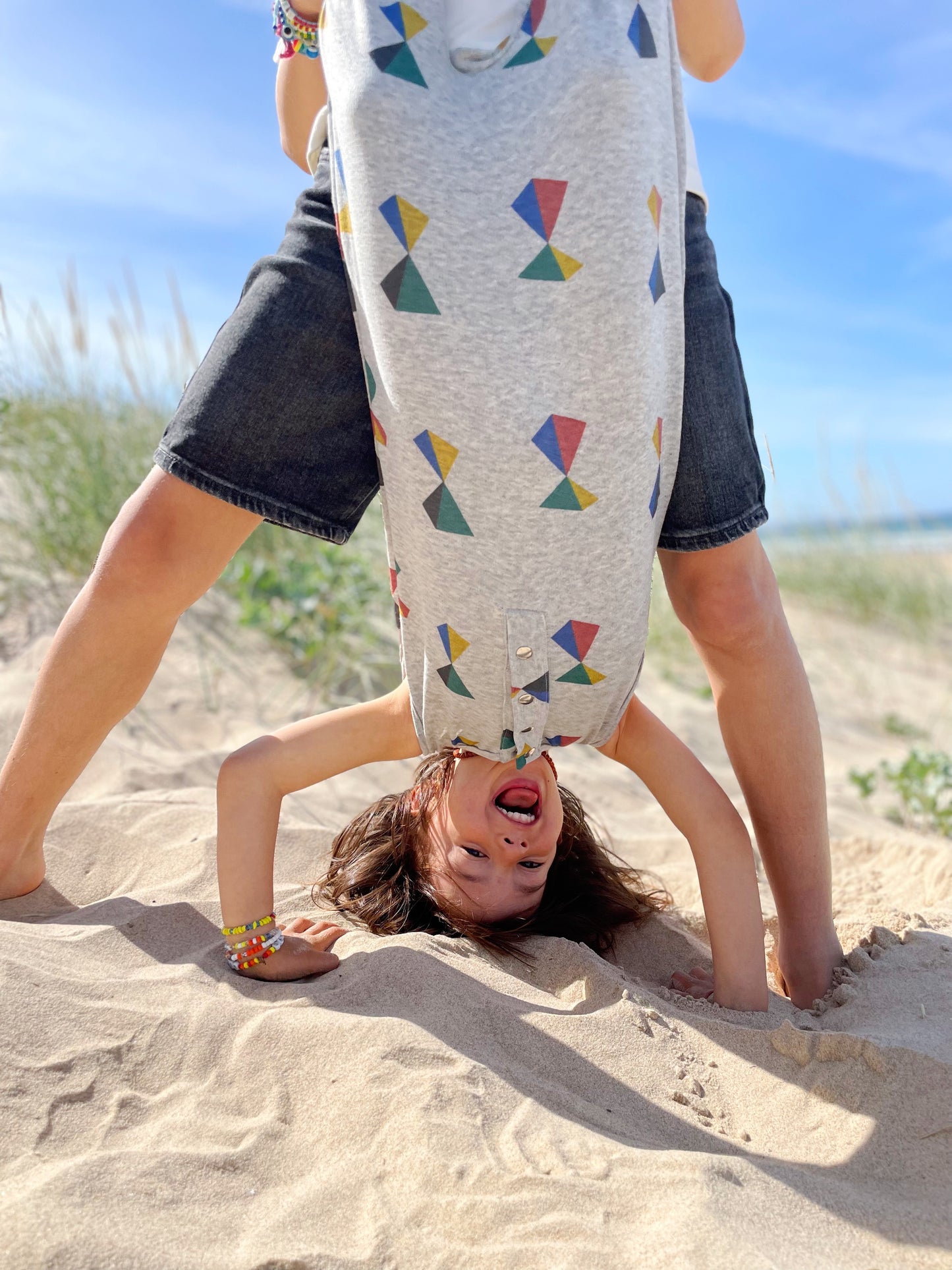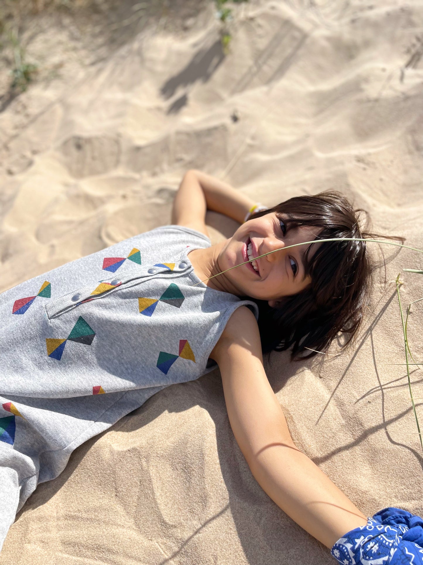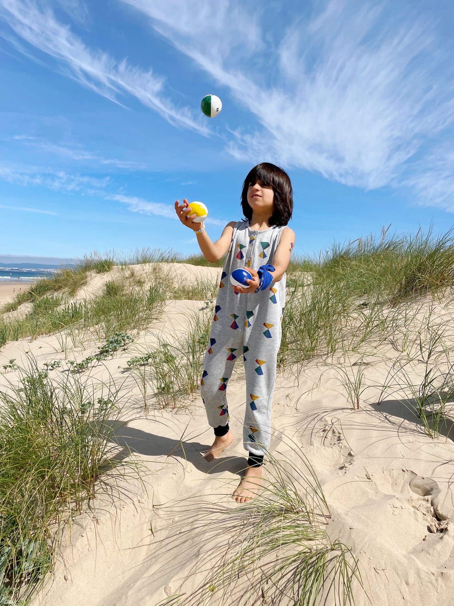 The jumpsuit, no sleeve and long legs is perfect to play around in all day.