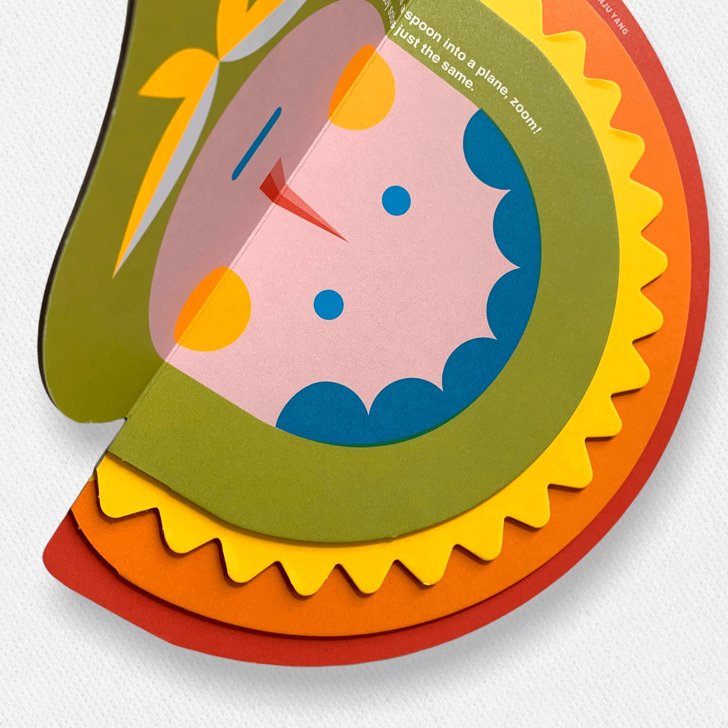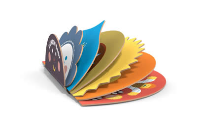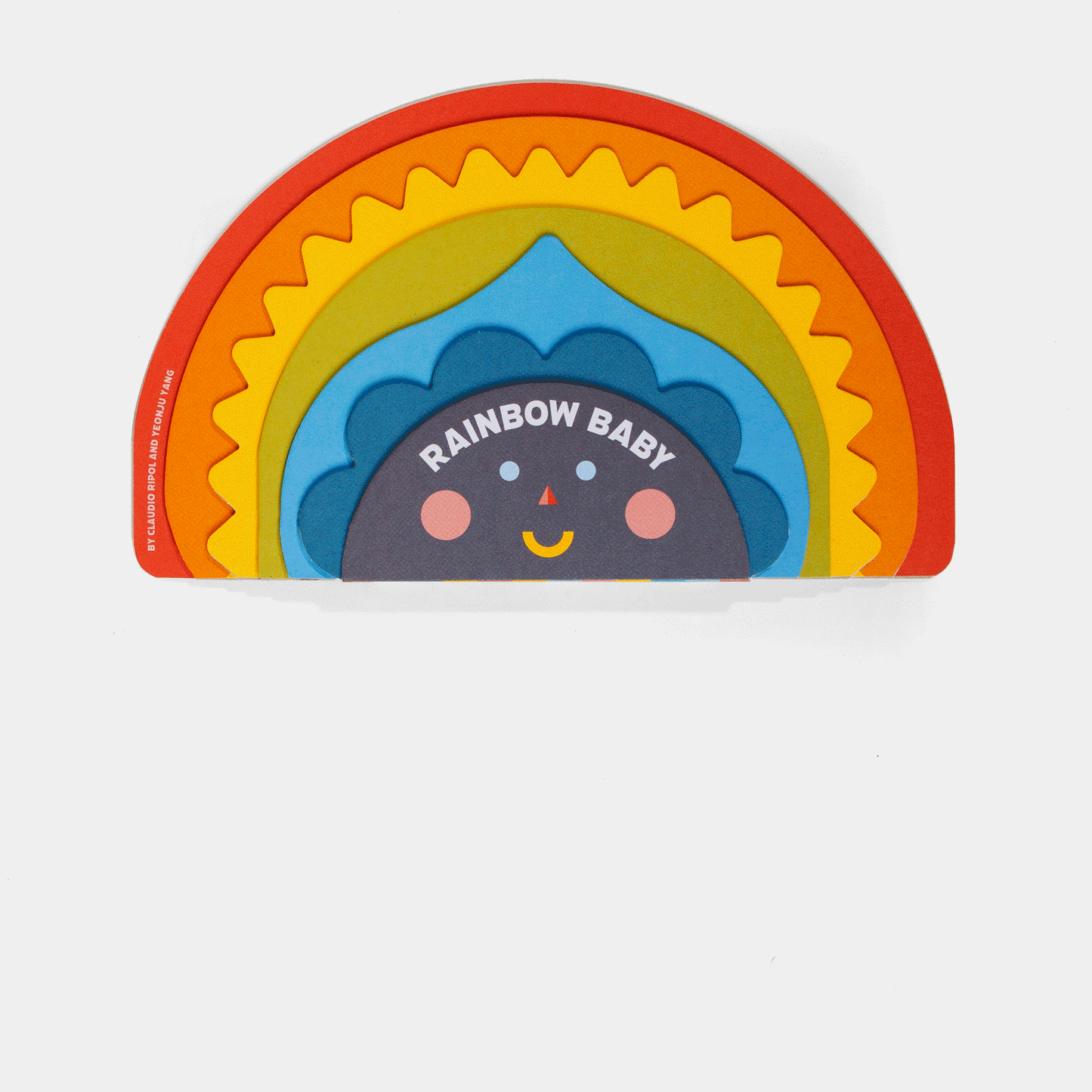 This board book uses bold colours and a unique format, where each page is an overlapping semi-circular shape to create baby's and her family's faces. The appearing and disappearing faces throughout the book's pages are a nod to peek-a-boo games and will encourage toddlers to be involved and interested. When closed shut, the book's pages come together to form a giant rainbow, meaning that the book can be displayed frontally as a glorious decoration piece on the shelf.