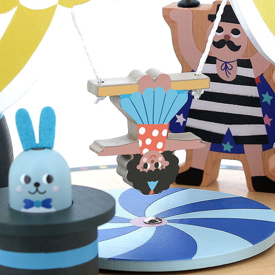 Take your place under the Vilac big top, designed by Michelle Carlslund, for a colorful show! The artists are waiting for you. 6 acts will follow one another to make your eyes light up: pop-up, acrobat, spring, squeak-squeak, optical illusion... Ideal for developing hand-eye coordination, this educational circus is conducive to stimulating the imagination and making your little one laugh. Let's go!