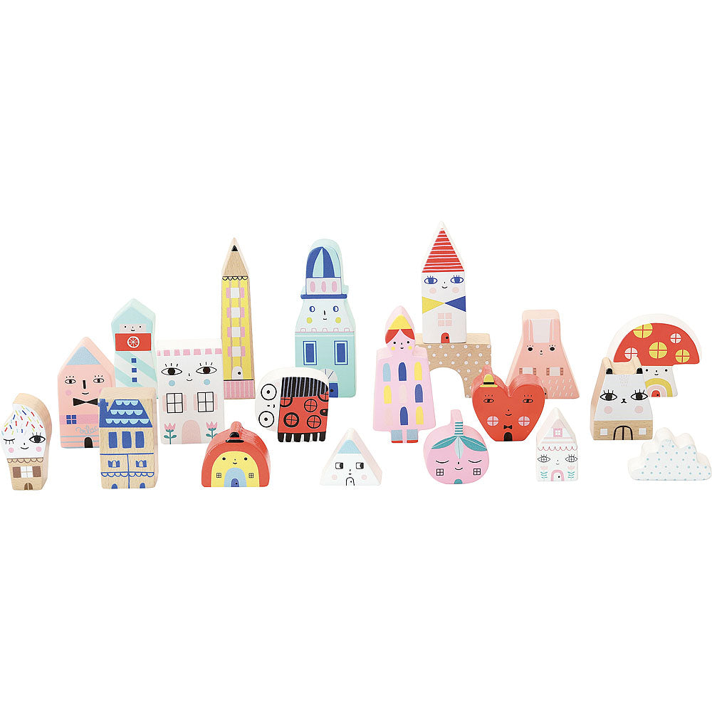 Not your average city building blocks, this beautiful set from Vilac is illustrated by Suzy Ultman and finished in gorgeous pastel colours. These quirky and playful buildings include a winking ice cream cone-shaped house, a pencil-shaped high rise, a squat toadstool abode, and a watchful lighthouse figure. The friendliest city around - these tiny buildings are literally smiling down (or up!) at you.