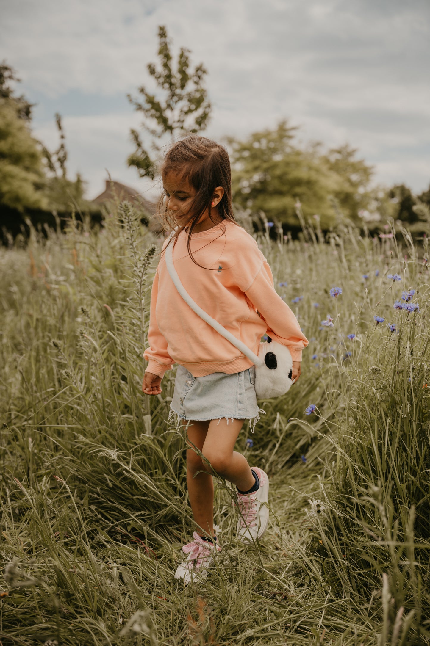 A super cute bag made from soft fabric with a shoulder strap. This cute, little shoulder bag in soft plush fabric with a full animal body is perfect for little ones to have their very own bag. Zipped to seal in treasures and carry around every day memories.