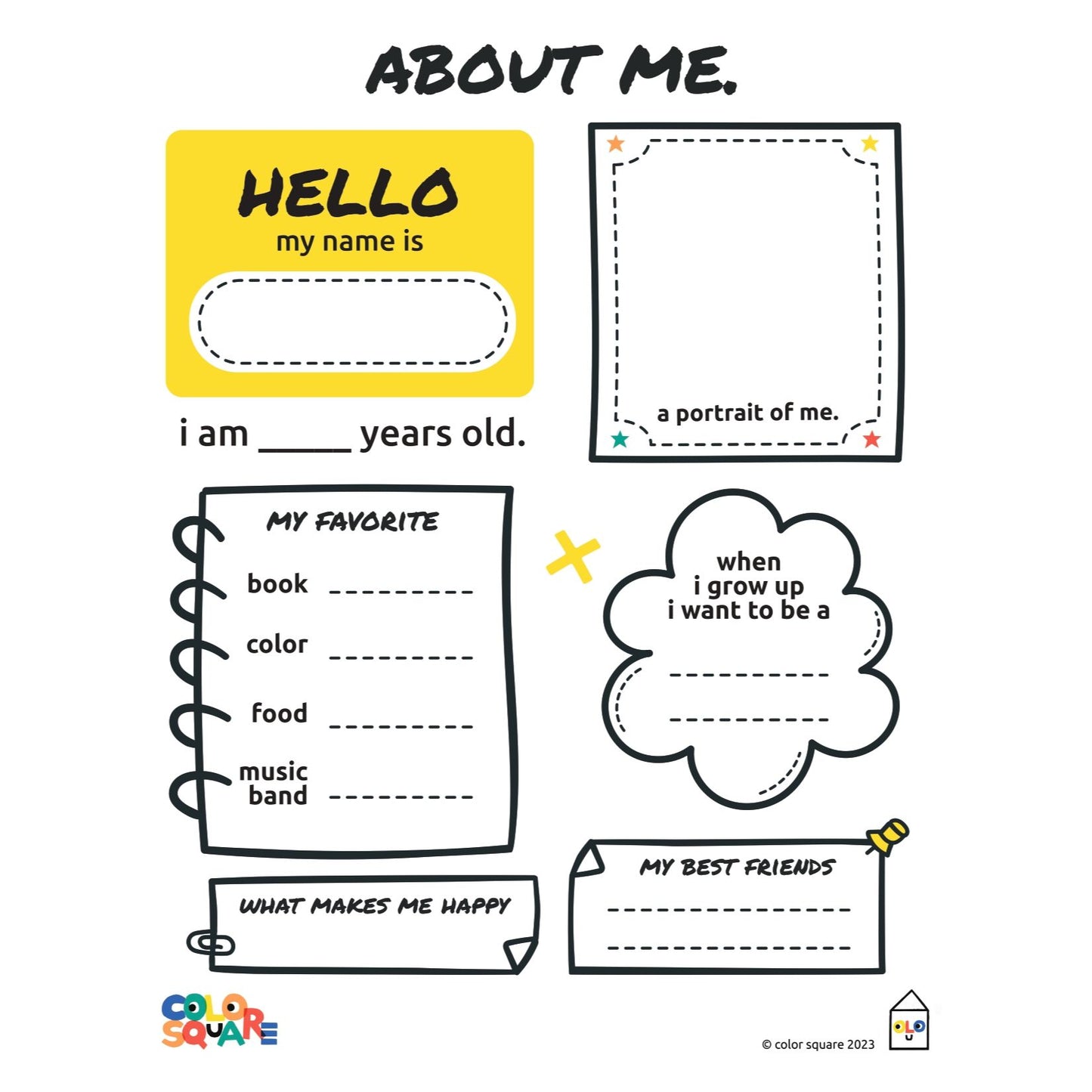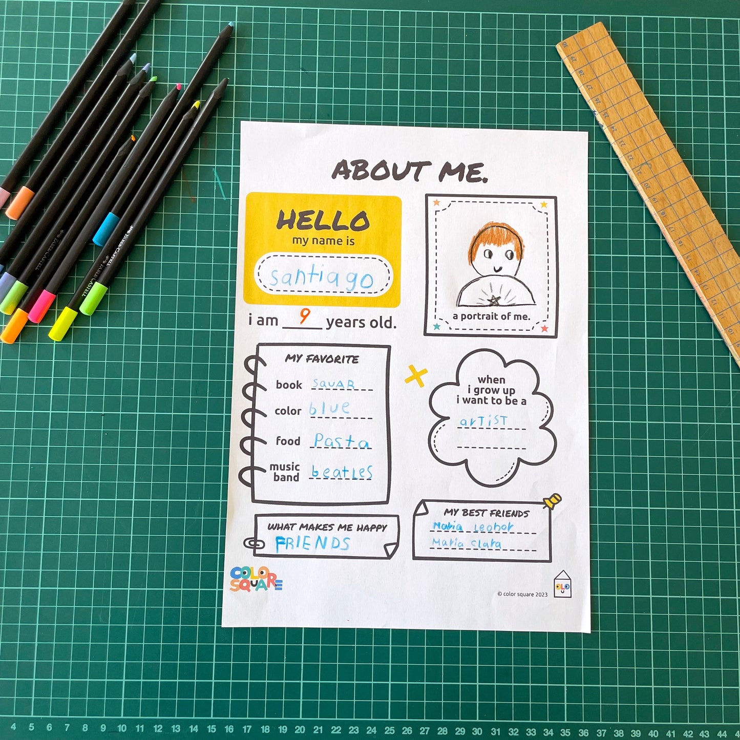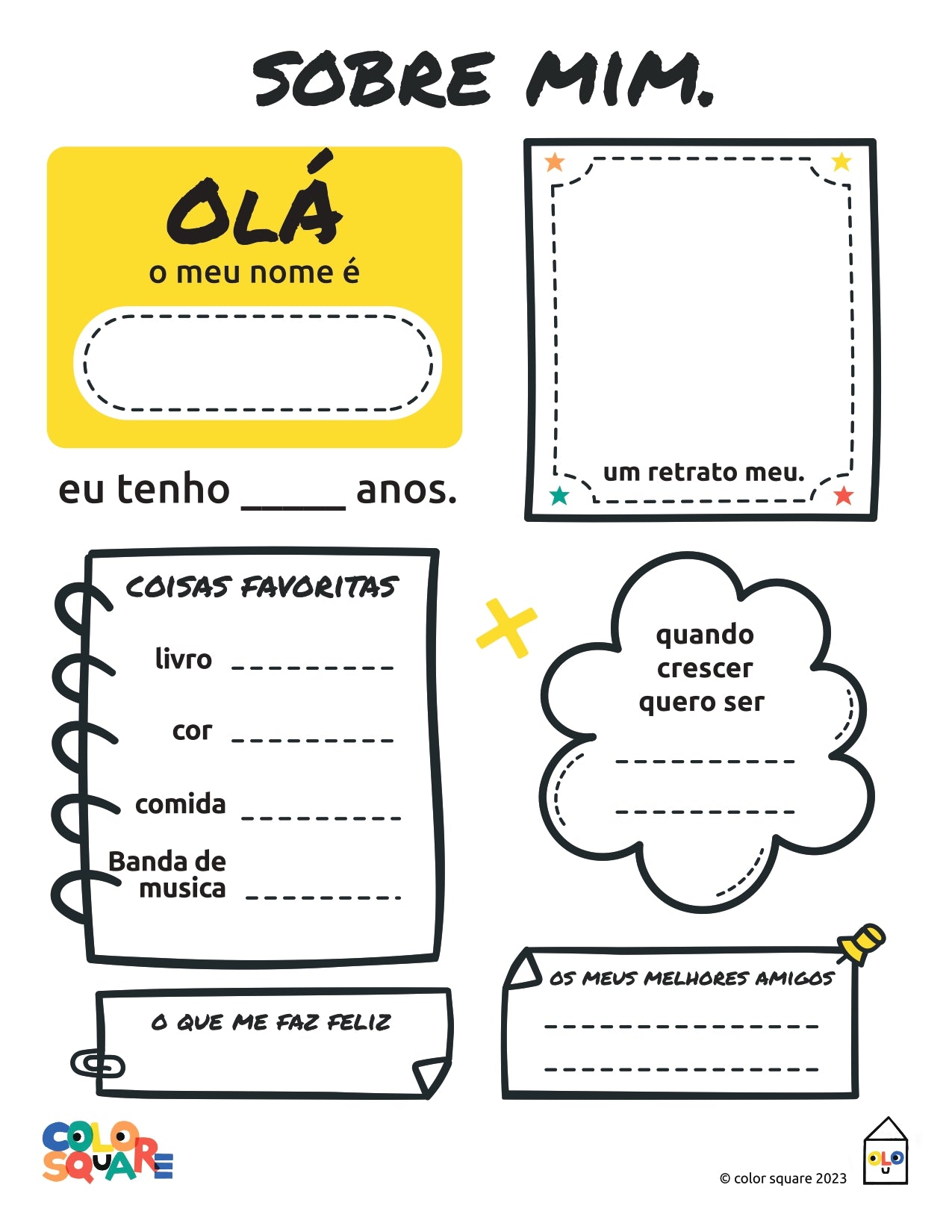 Aproveita o nosso modelo “Sobre mim” e estimula a criatividade dos teus filhos para que eles se divirtam enquanto aprendem sobre si mesmos. Verifica o progresso ano após ano!
