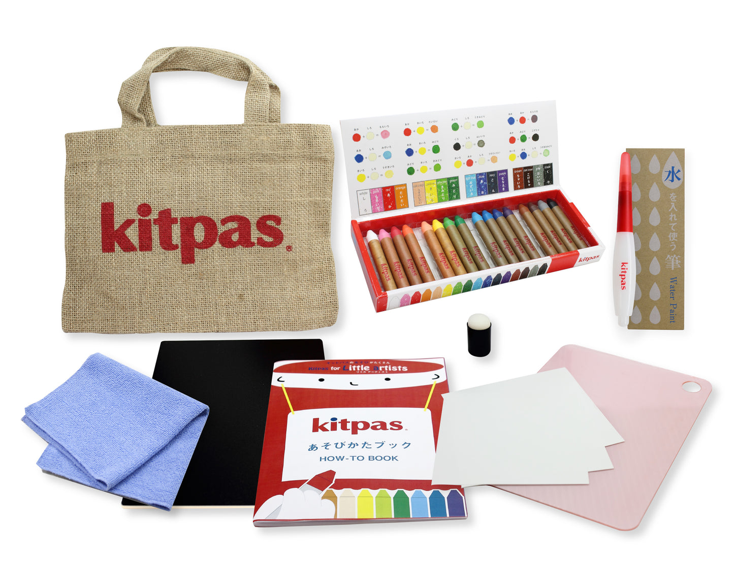- O conjunto vem numa bolsa de juta kitpas feita de serapilheira, e contem: kitpas Medium 16 cores, pincel de água kitpas, esponja de dedo para stencil, pano, painel reversível (tamanho A5: C8 1/2" x L6"), quadro transparente, livro de instruções.