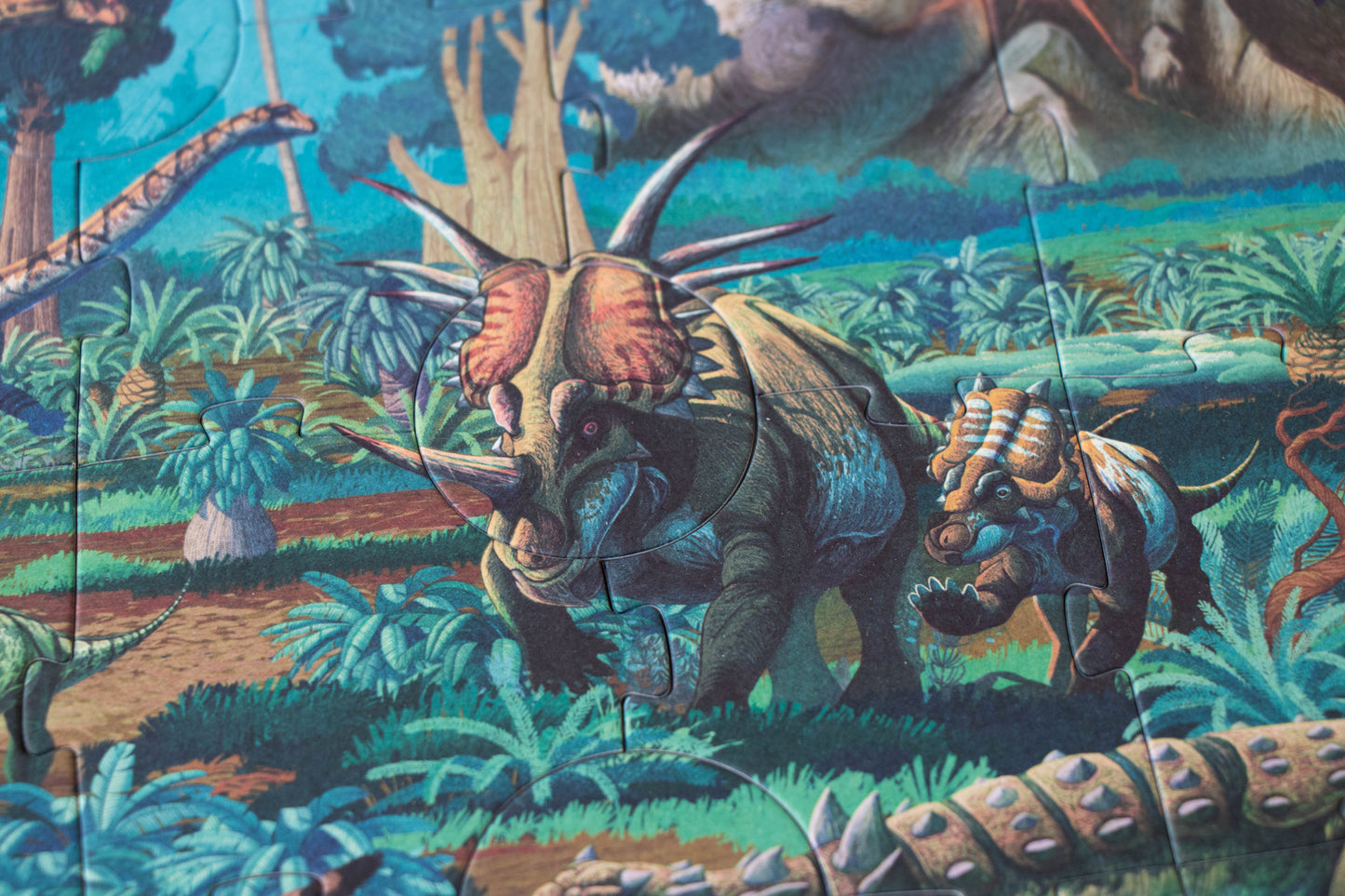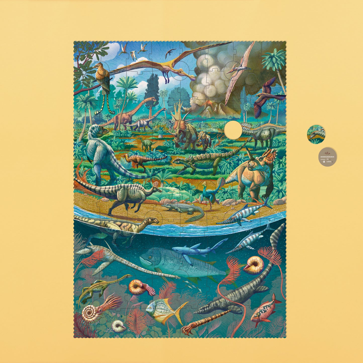 Um puzzle e jogo de observação de dinossauros de 100 peças, um brinquedo didático para ensinar curiosidades sobre diferentes dinossauros enquanto se diverte!