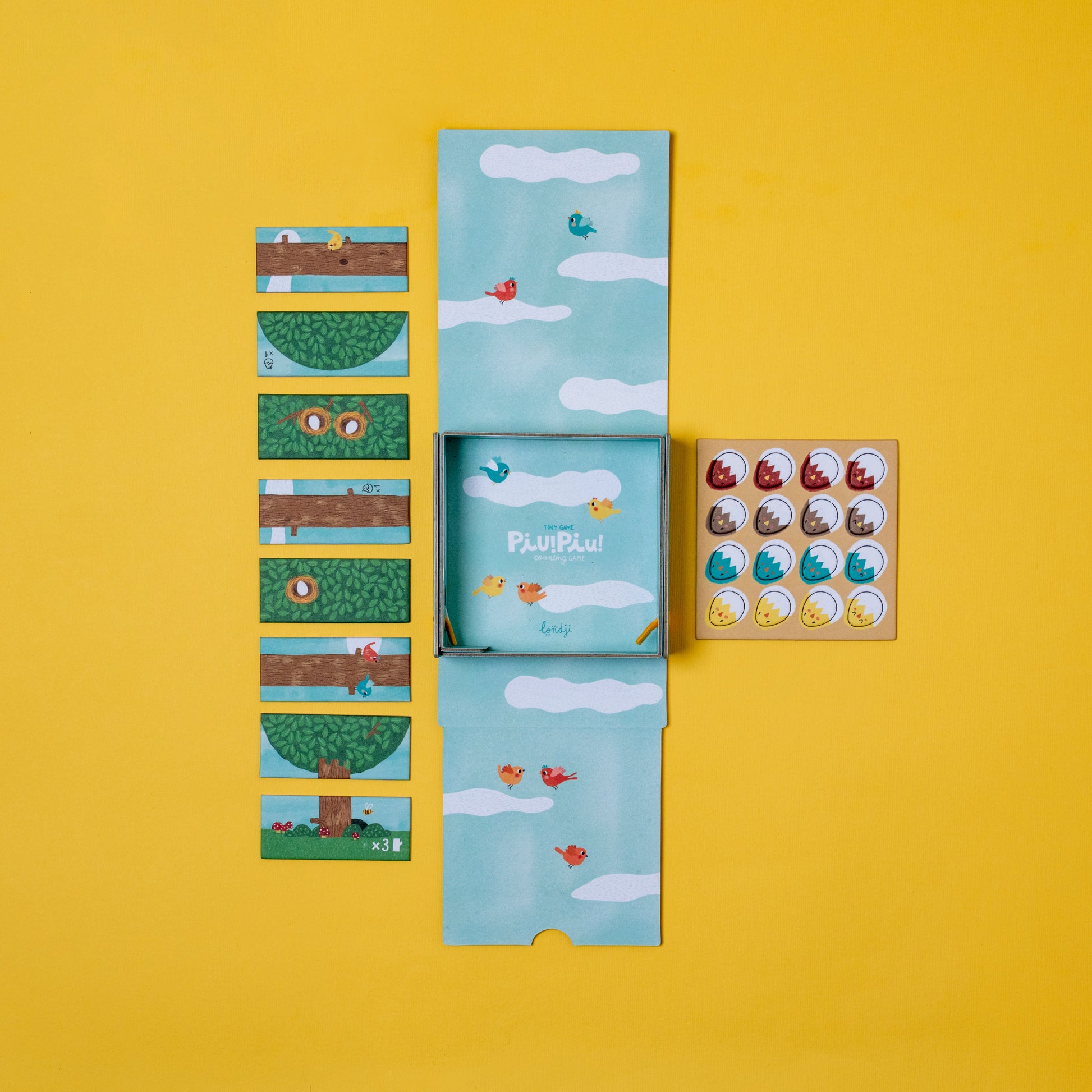 Piu, piu! In Londji’s forest, roots, trunks, and tree tops form trees full of nests where adorable chicks will hatch. Place each piece carefully, think through your moves, and help the chicks hatch. Whoever hatches the most chicks wins!