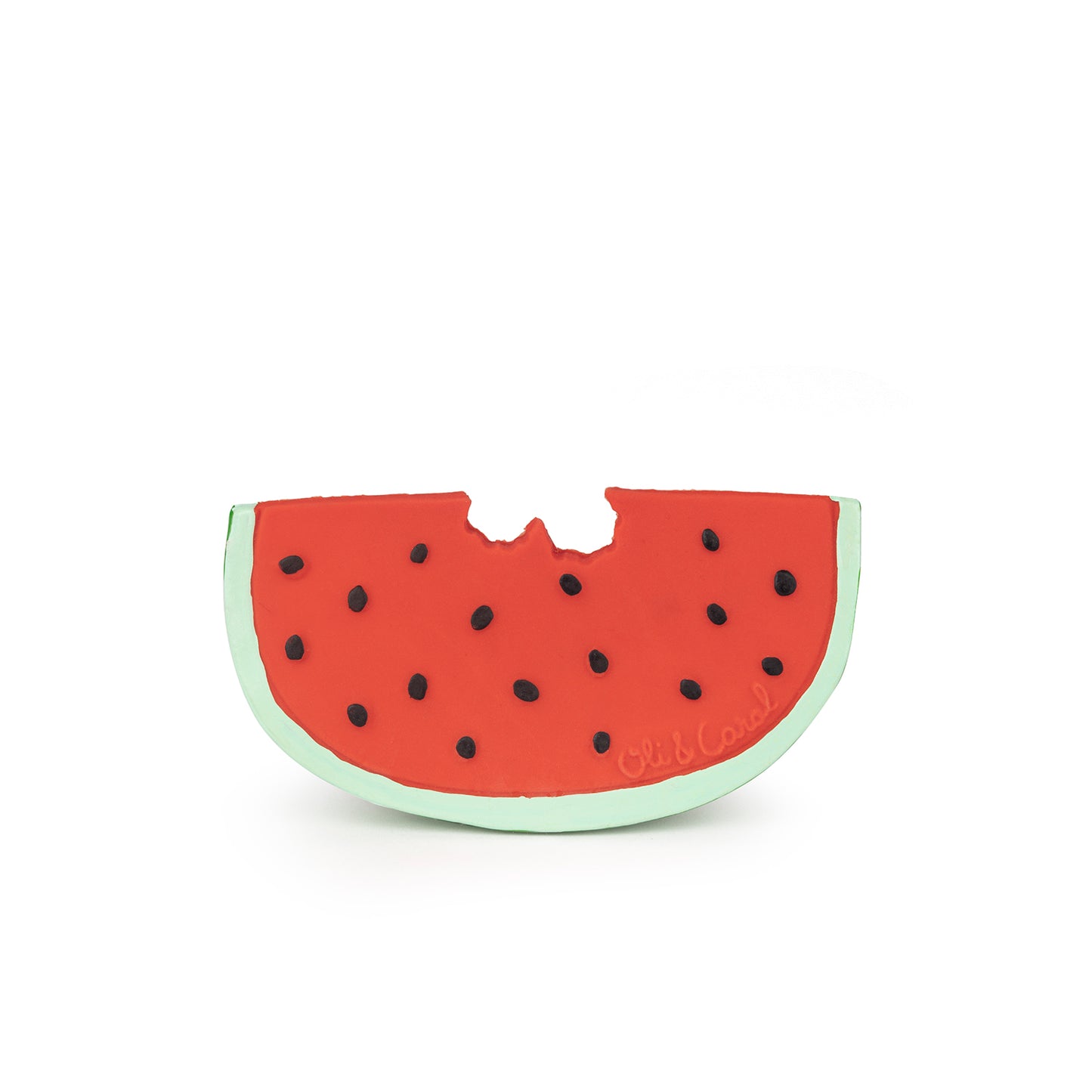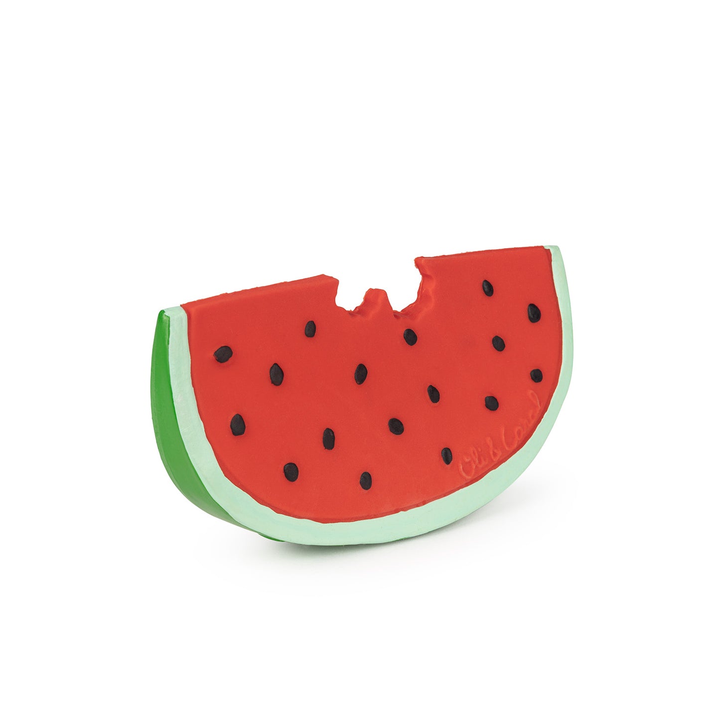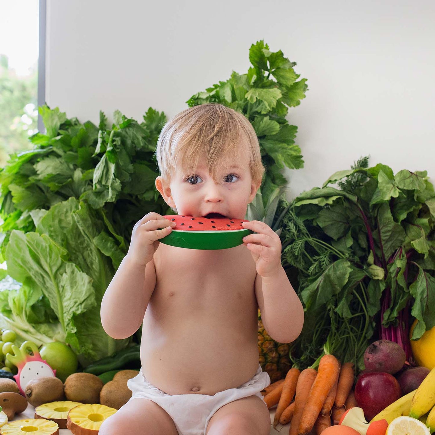 “Wally the Watermelon” é um mordedor em forma de fruta que estimula os sentidos dos bebes enquanto acalma as gengivas. As suas texturas realistas desenvolvem o tato das crianças. É cuidadosamente pintado à mão com pigmentos naturais, o que o torna totalmente seguro para os mais pequenos. Sabe que incluir a melancia na alimentação ajuda a reter 90% da água do corpo humano? Introduza às crianças um estilo de vida saudável desde tenra idade! Este produto é perfeito como mordedor de bebe, brinquedo para bebes e crianças, brinquedo de banho, para brincadeiras sensoriais e objeto decorativo. É fabricado por um processo artesanal, sustentável e ecológico com borracha 100% natural das árvores da Seringueira. Por ser feito numa só peça e sem furos, evita a criação de bactérias no seu interior. Pintados à mão com pigmentos naturais um por um, para que não haja dois iguais! A partir dos 0 anos