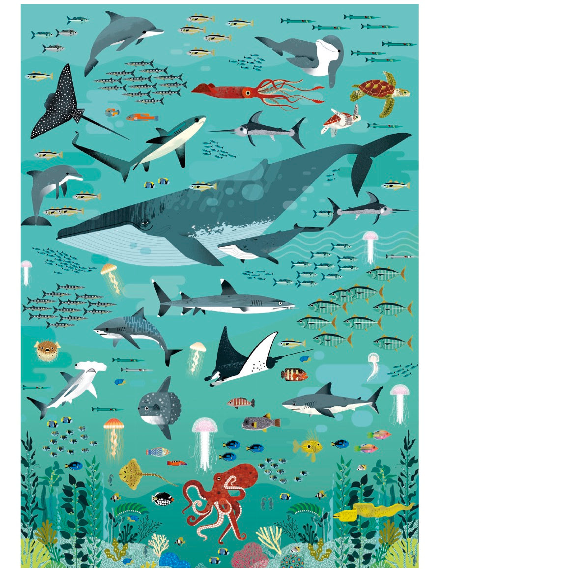 Este puzzle com 500 peças, tem uma imagem icónica de um dos Posters Poppik. Nesta imagem magnifica, descobre as mais famosas espécies subaquáticas : baleias, golfinhos, medusas, peixes tropicais e polvos.